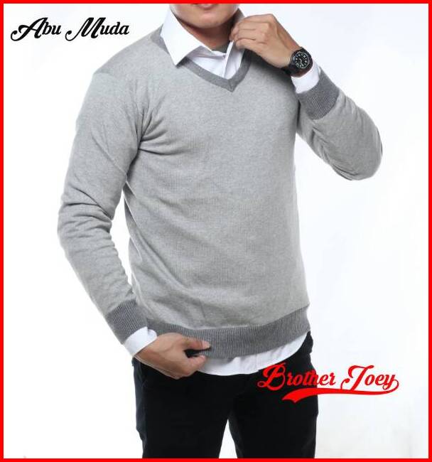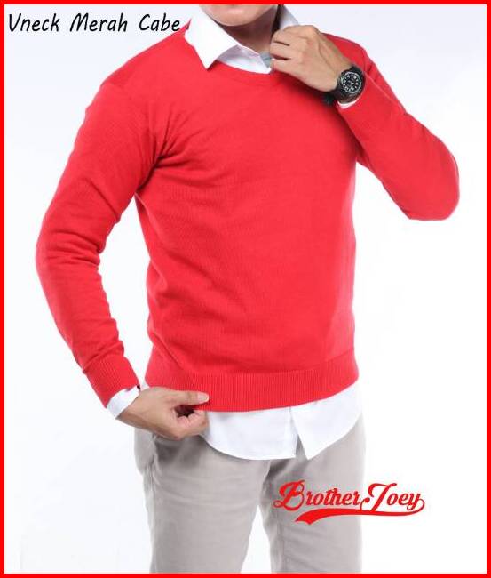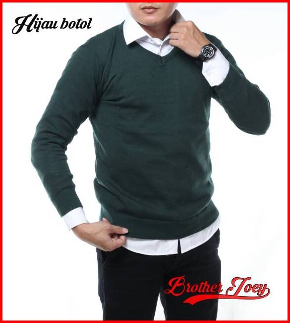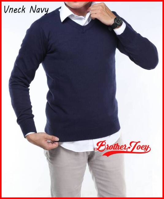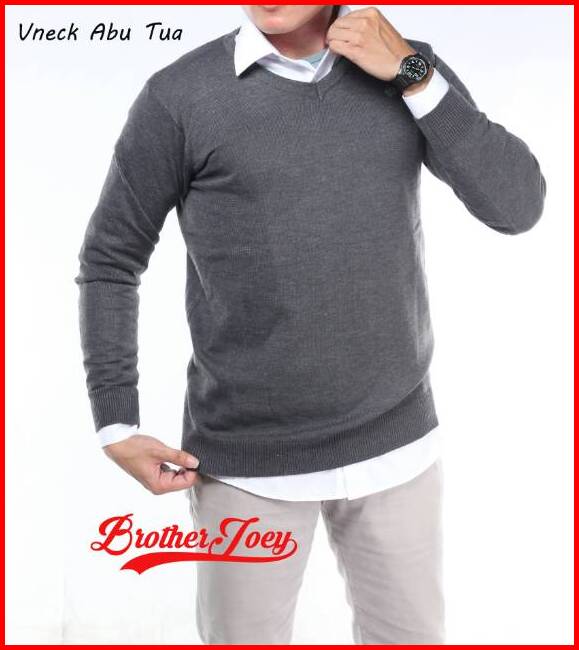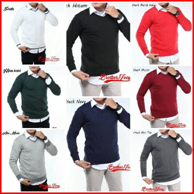 Brother Joey Sweater Rajut V Neck Katun Polos 8 Warna