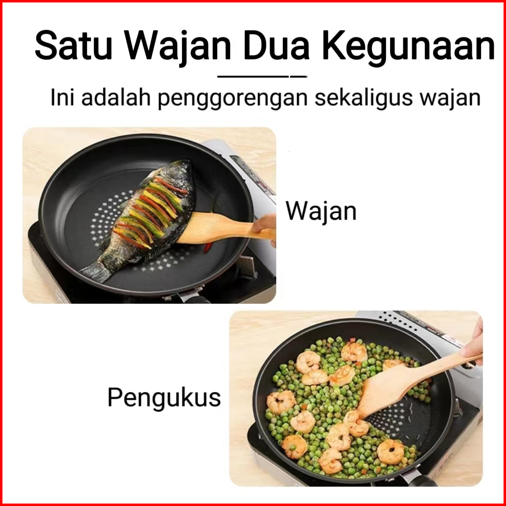 Wajan Penggorengan Wajan Dengan Wajan Anti Lengket Batu Medis Tutup Kaca 24 26 28 30 32cm