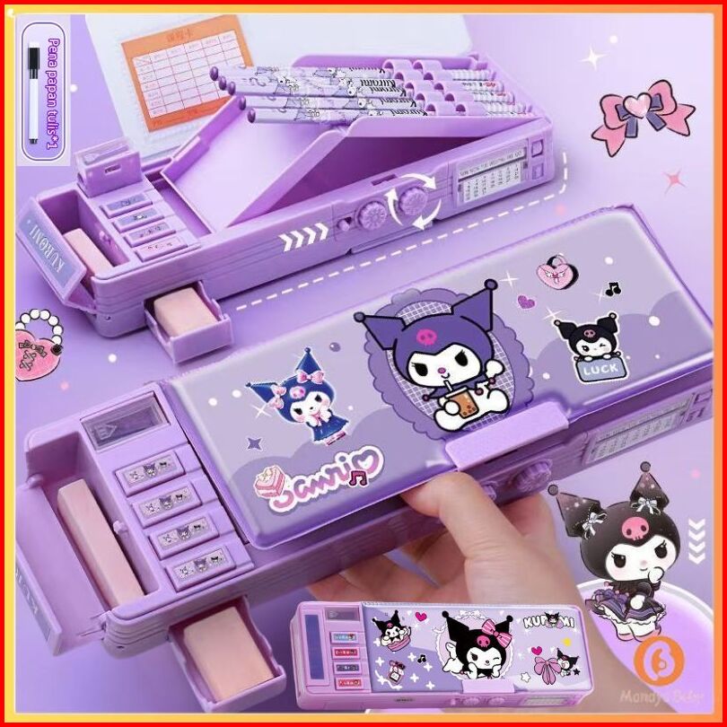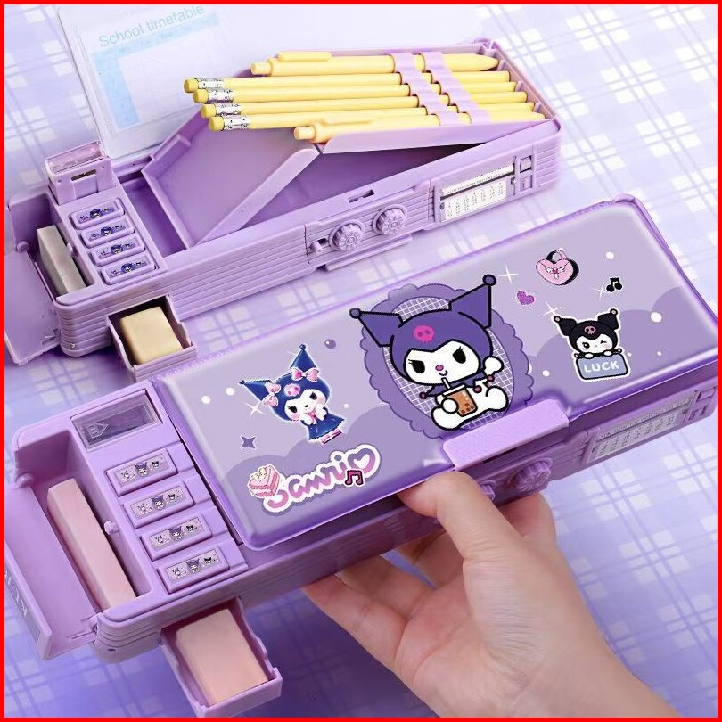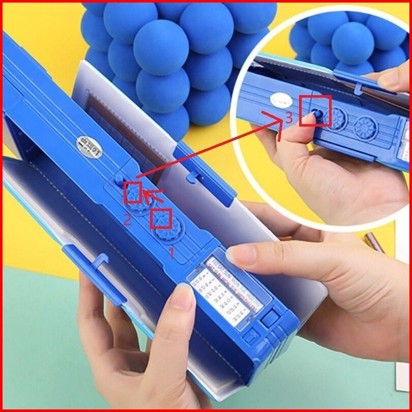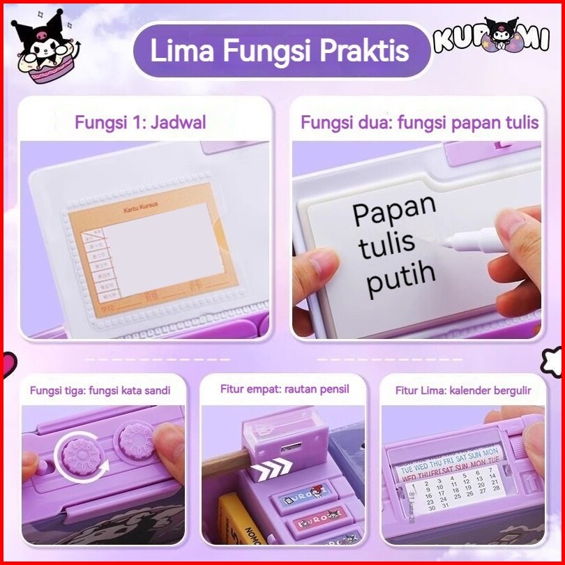Penjual Lokal 9in1 Kotak Pensil Kunci Kode Bahan Tahan Air Kulomi Tempat Pensil Password Multifungsi Lapis Ganda Berkapa