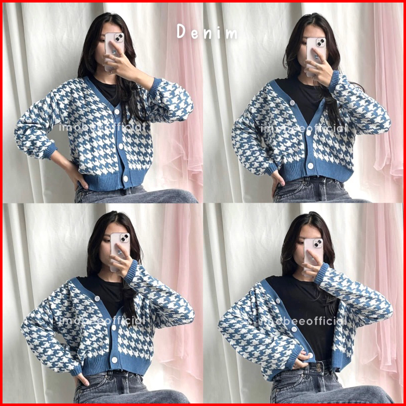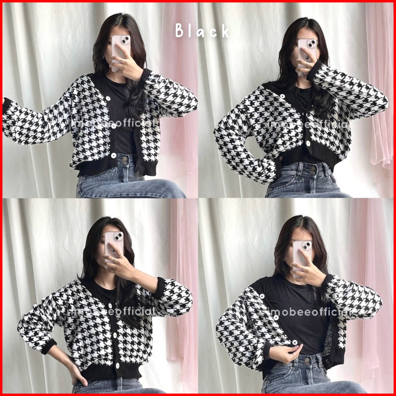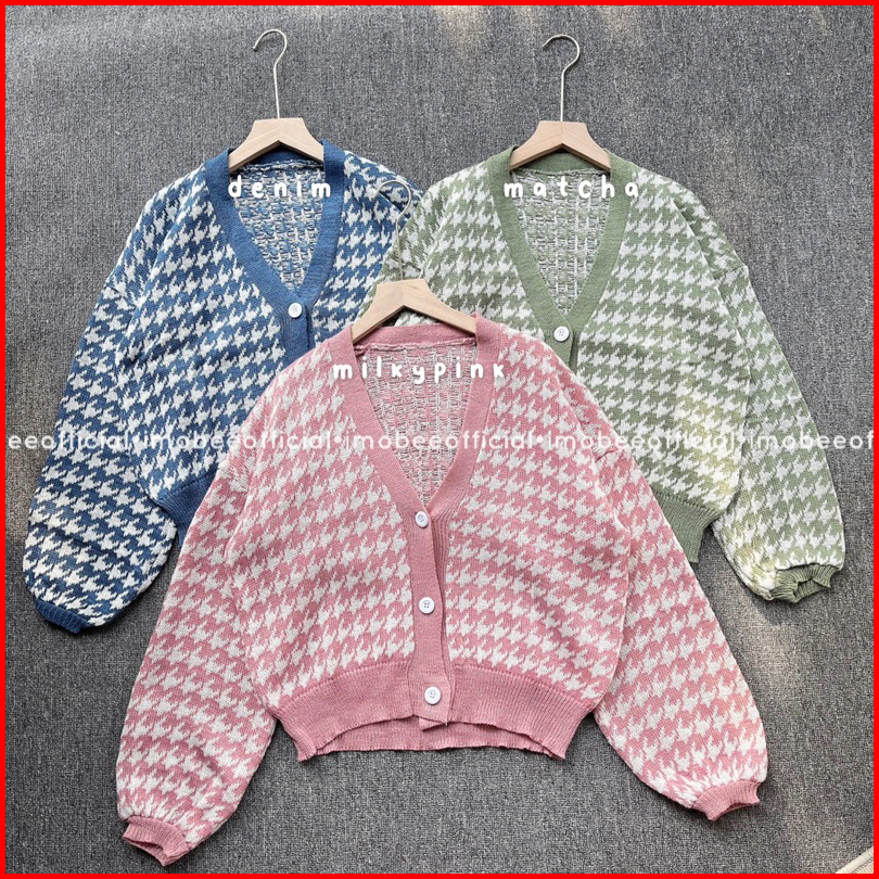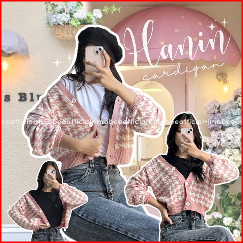 Hanin Cardigan Rajut Tweed Cardigan Korea Crop Cardi Balon