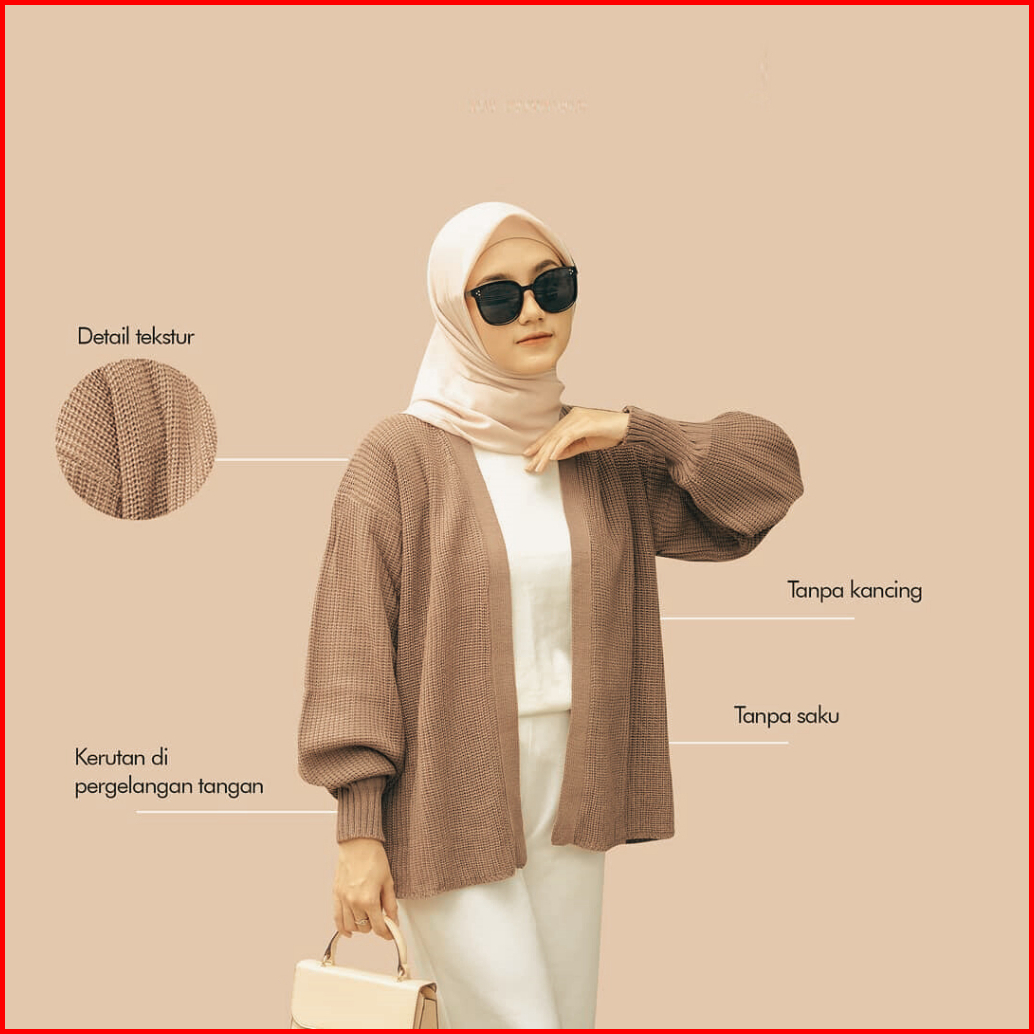 Cardigan Rajut Wanita Crop Tangan Balloon Nolab Cardi
