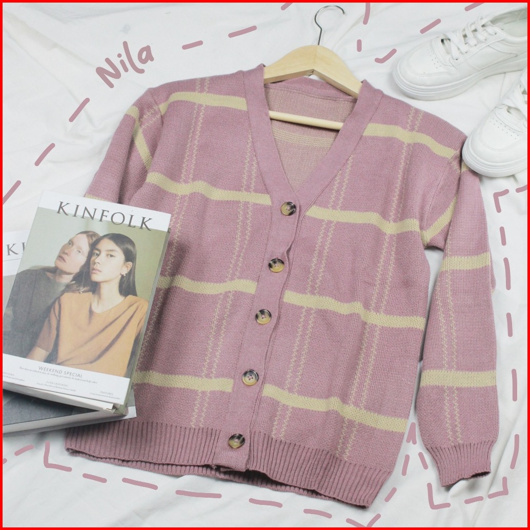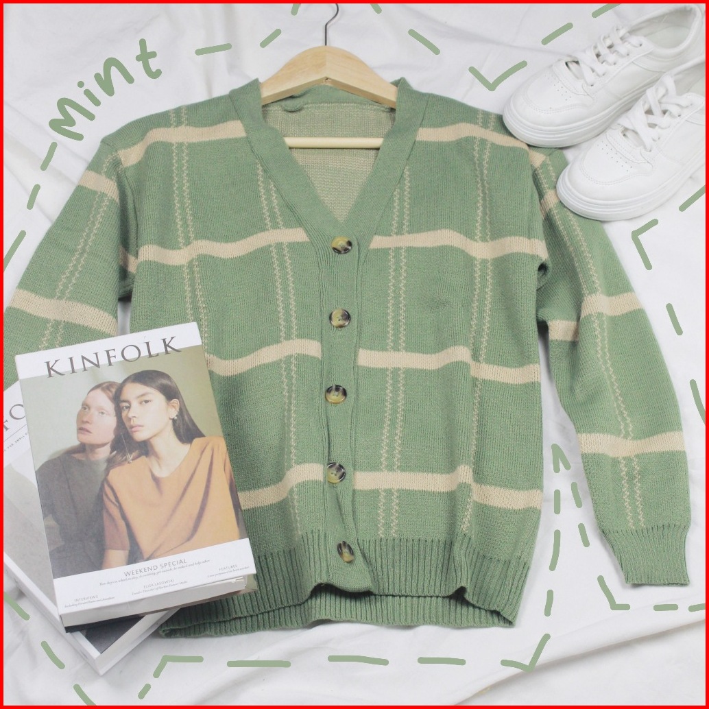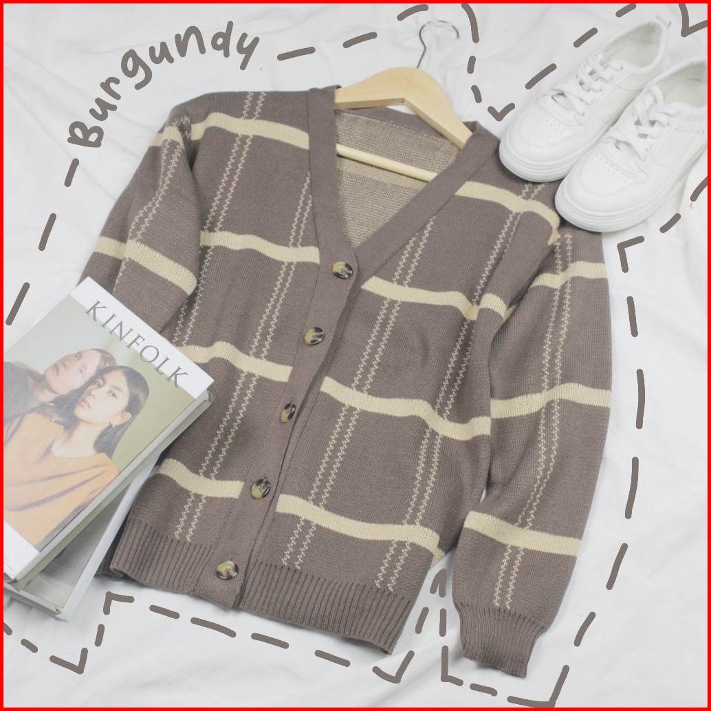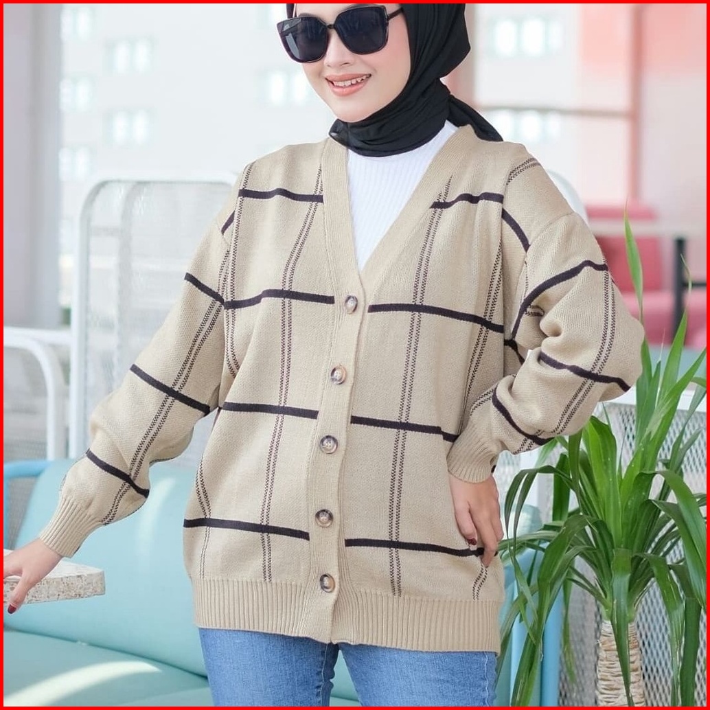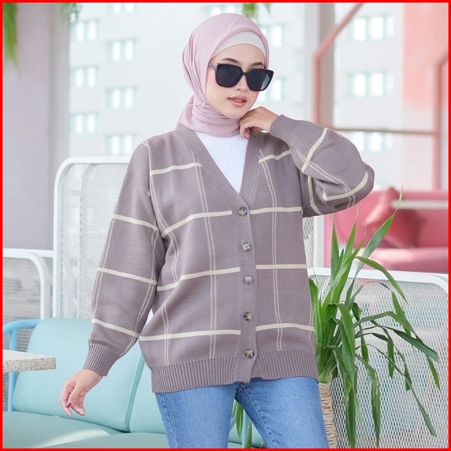 Cardigan Rajut Wanita Sean Kardigan Rajut Motif Kotak Premium