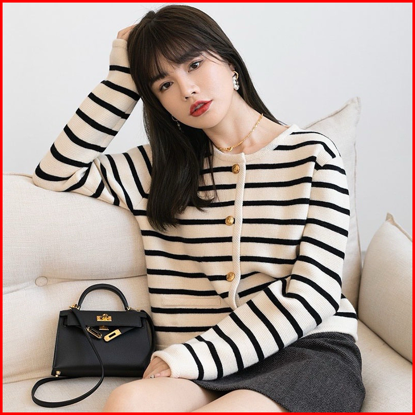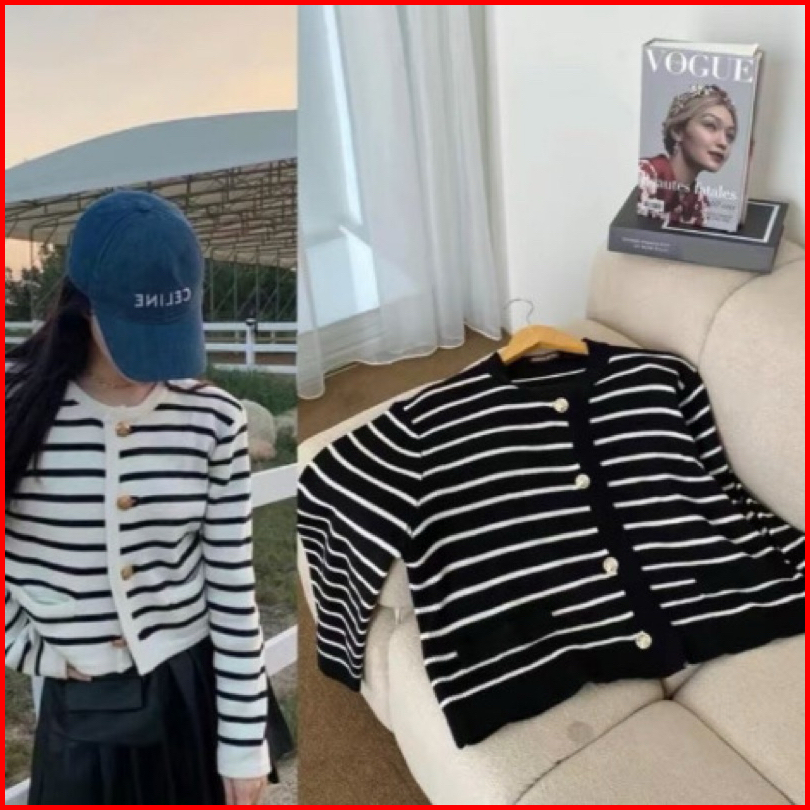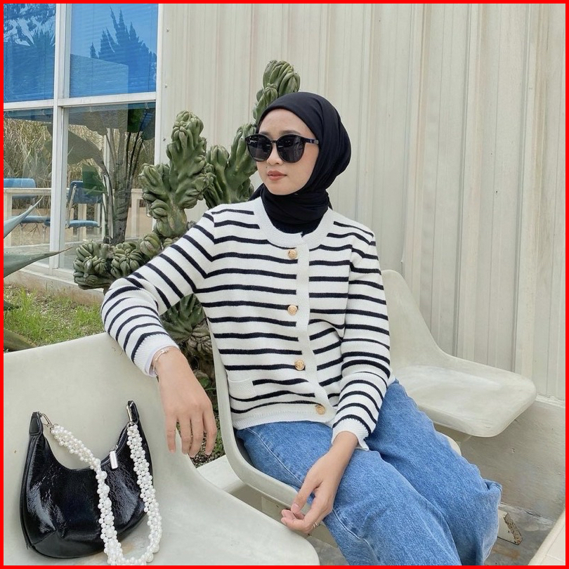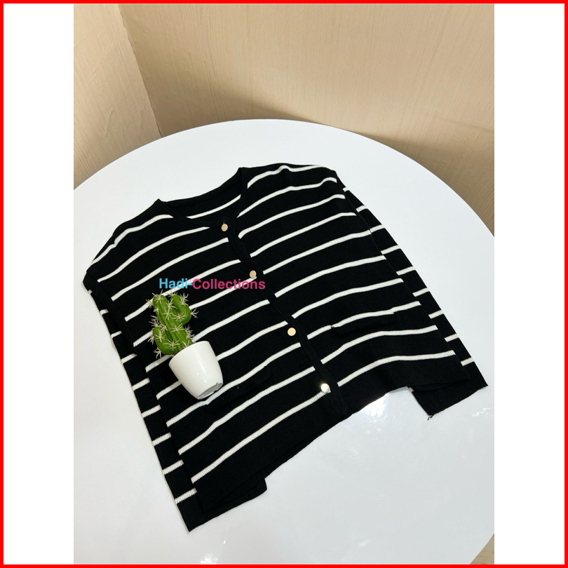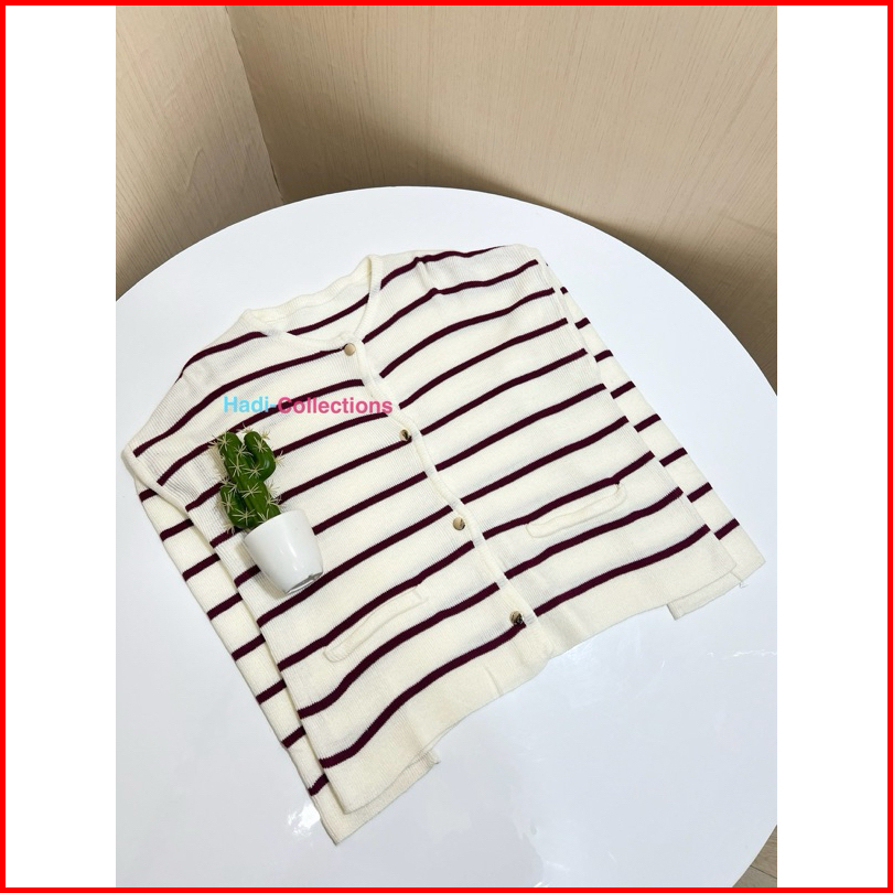 Alika Knite Cardigan Rajut Wanita Korean Sytle Striped Knitwear