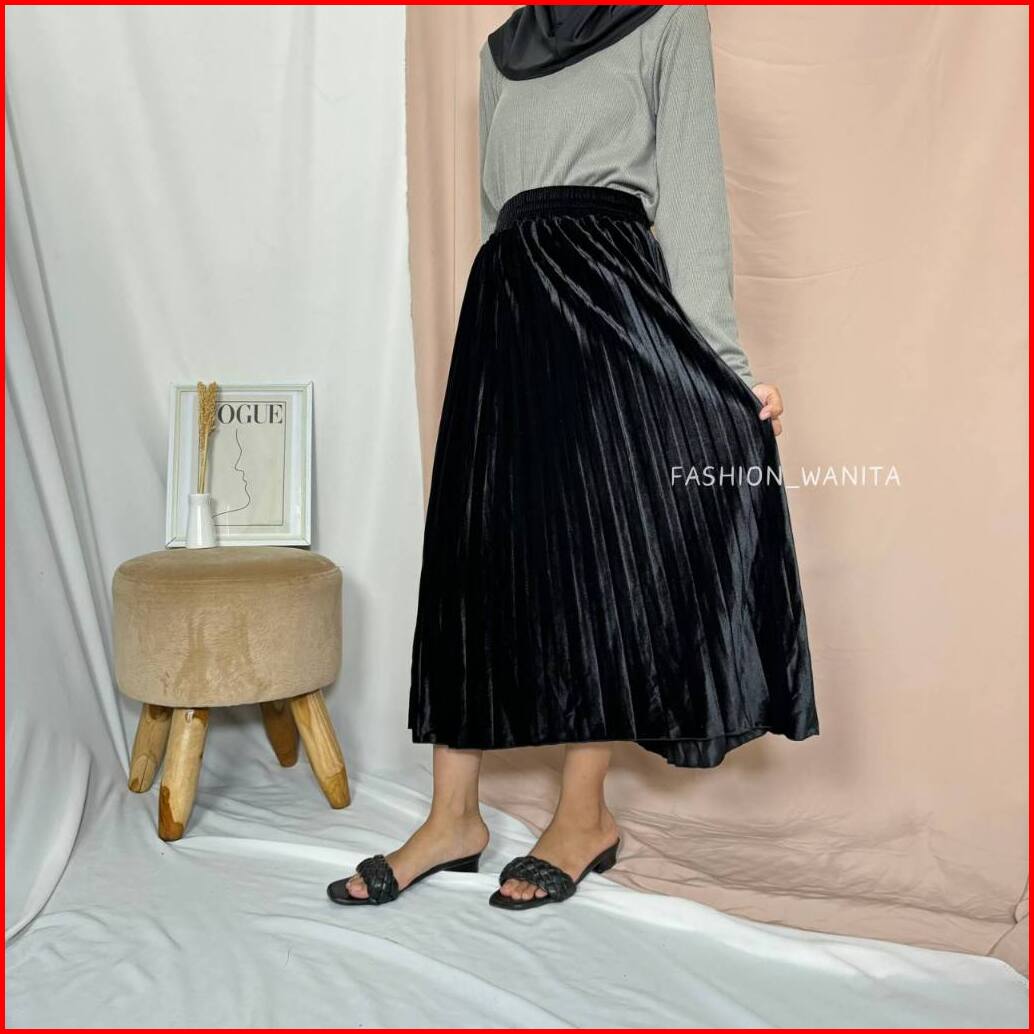 Rok Plisket Bludru Velvet 7 8 Premium Rok Bludru Rokmidi Rokplisket Rokvelvet Rokimport