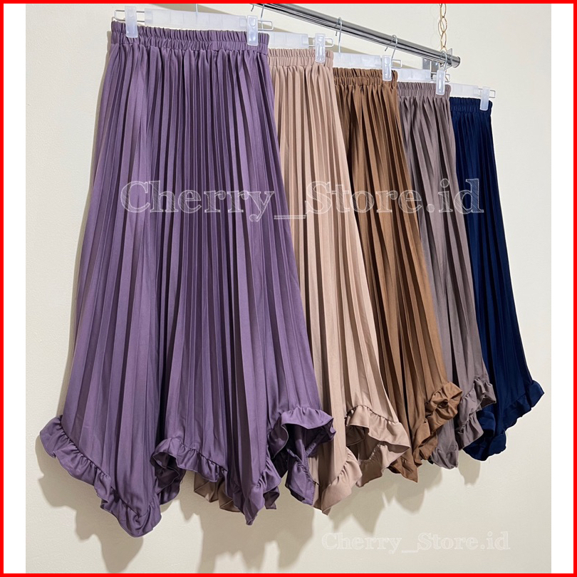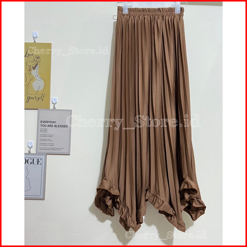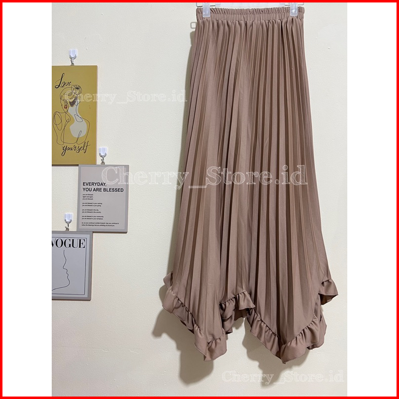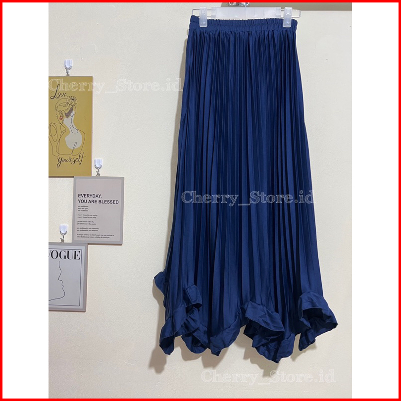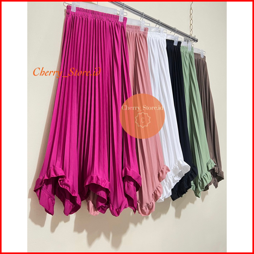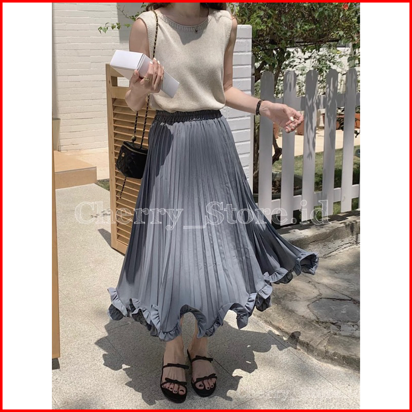 Cherry Peony Ruffle Skirt Rok Plisket Ruffle Korean Style Rok Panjang Wanita