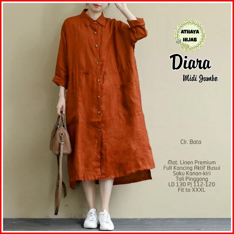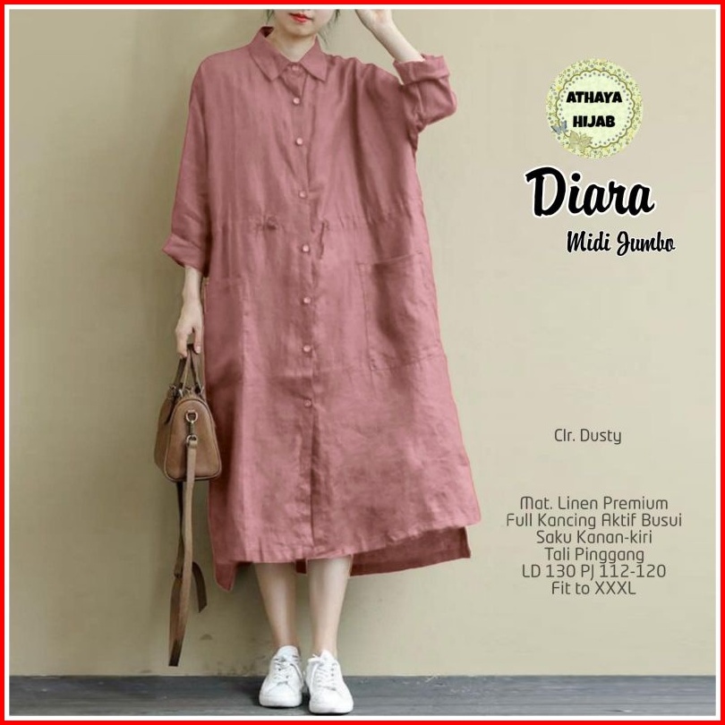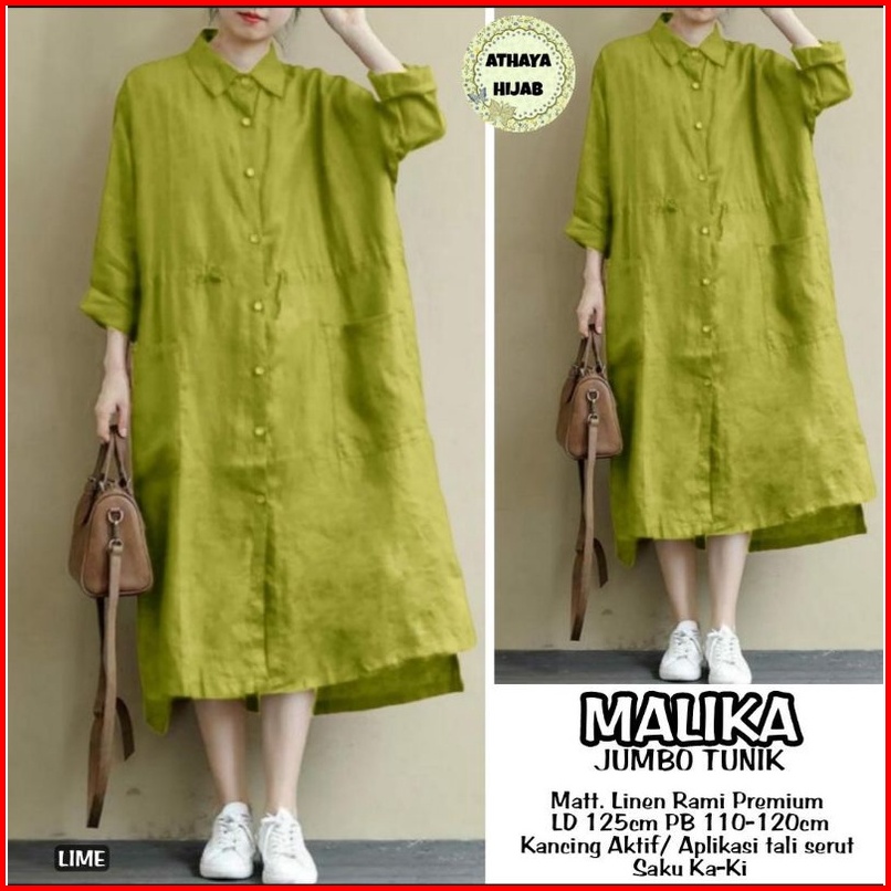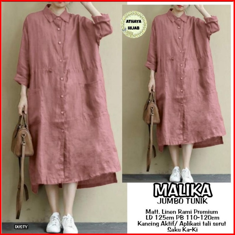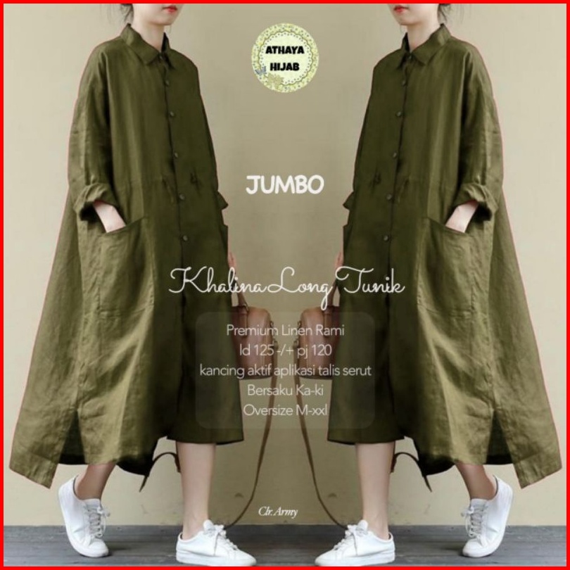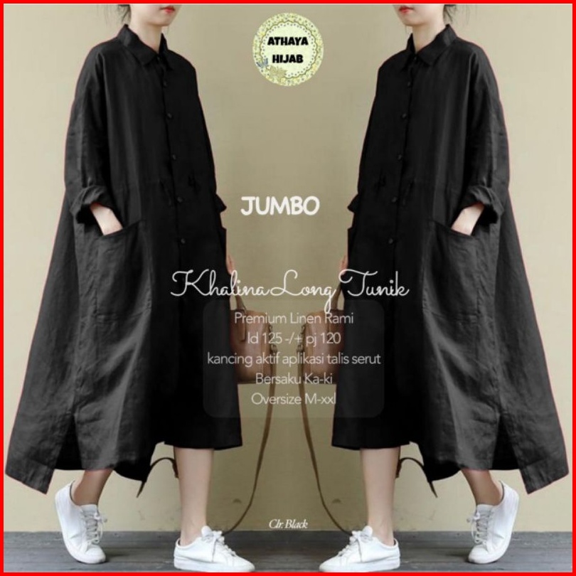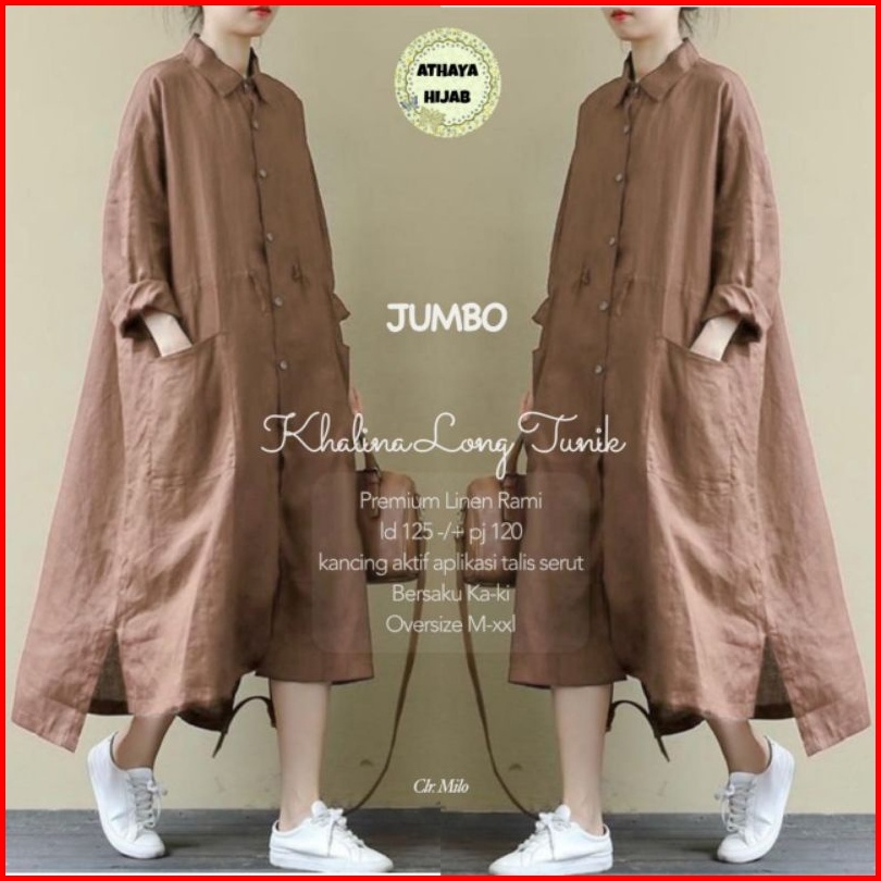 Tunik Wanita Oversize Khalina Long Tunik Jumbo Premium Ld 125 Linen Rami Ori Athaya