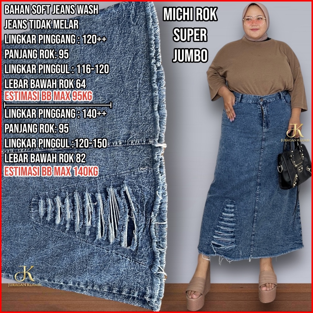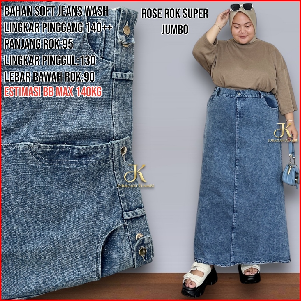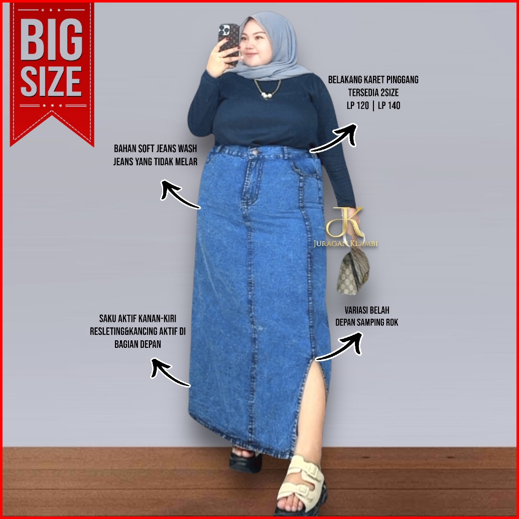 Rok Span Jeans Oversize Jumbo Dan Super Jumbo Bb 75-130kg Bahan Soft Jeans Free Bros Byjuraganklambi