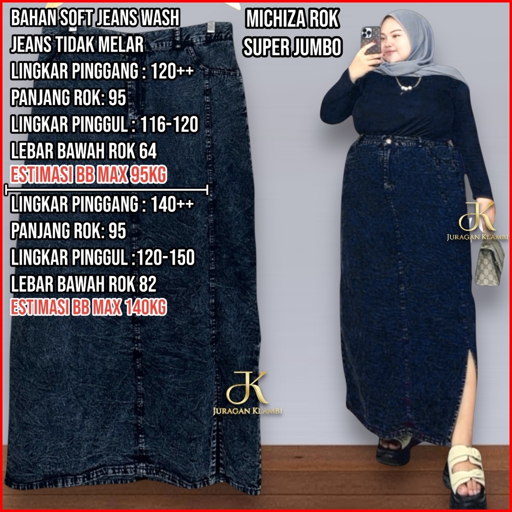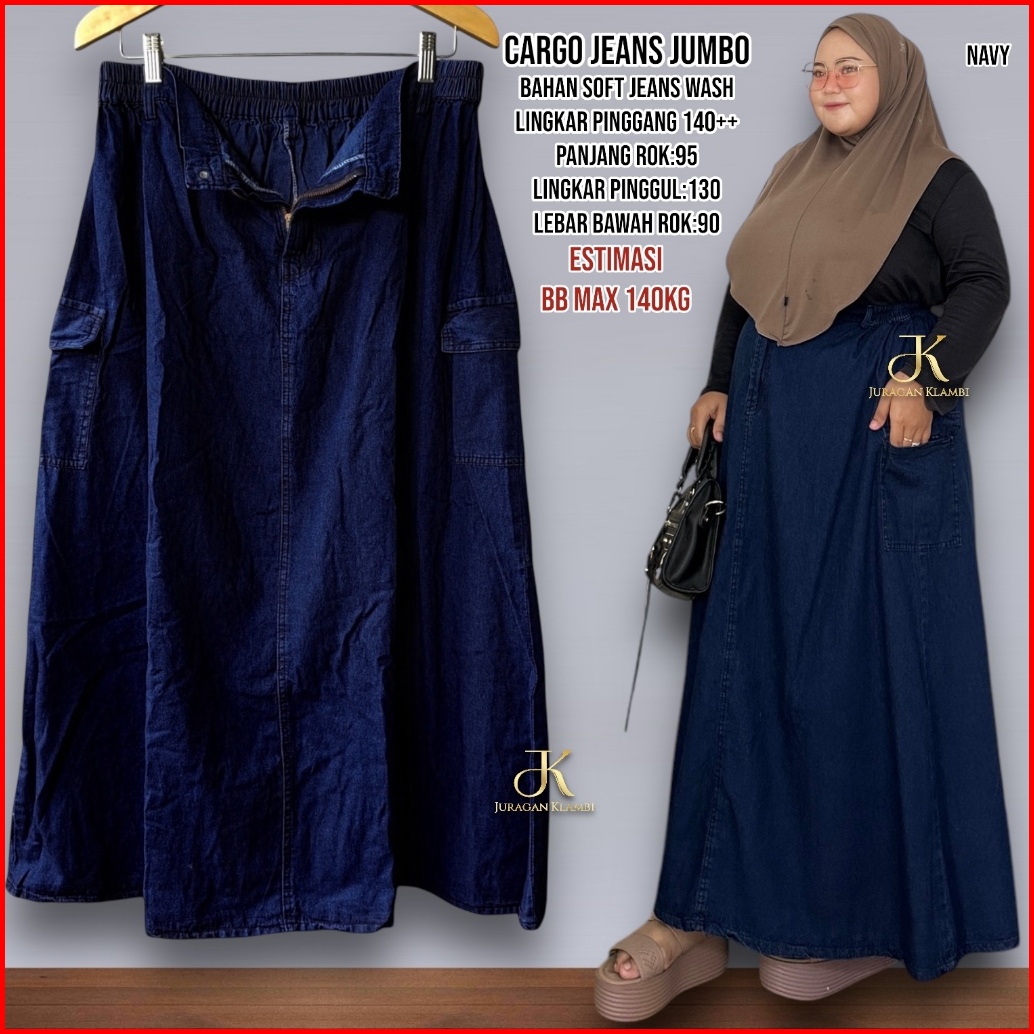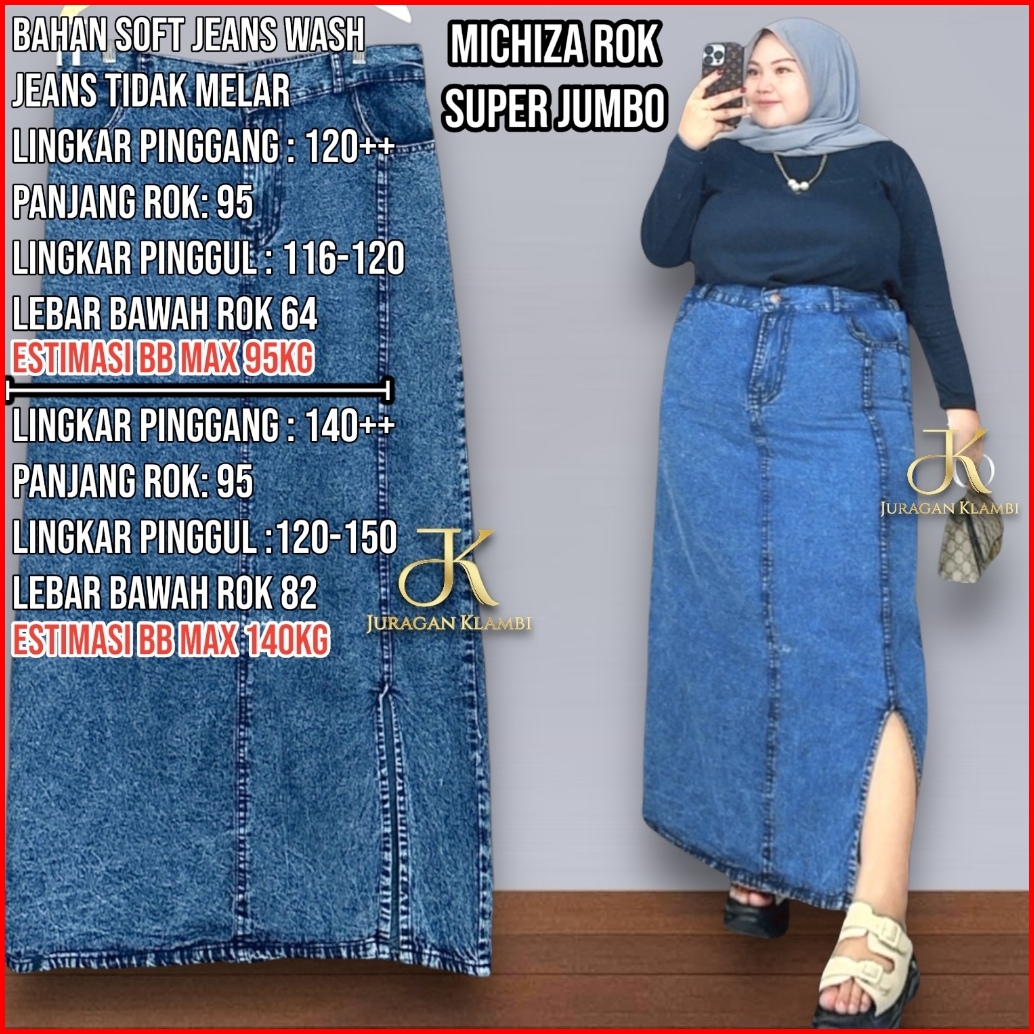Rok Span Jeans Oversize Jumbo Dan Super Jumbo Bb 75-130kg Bahan Soft Jeans Free Bros Byjuraganklambi