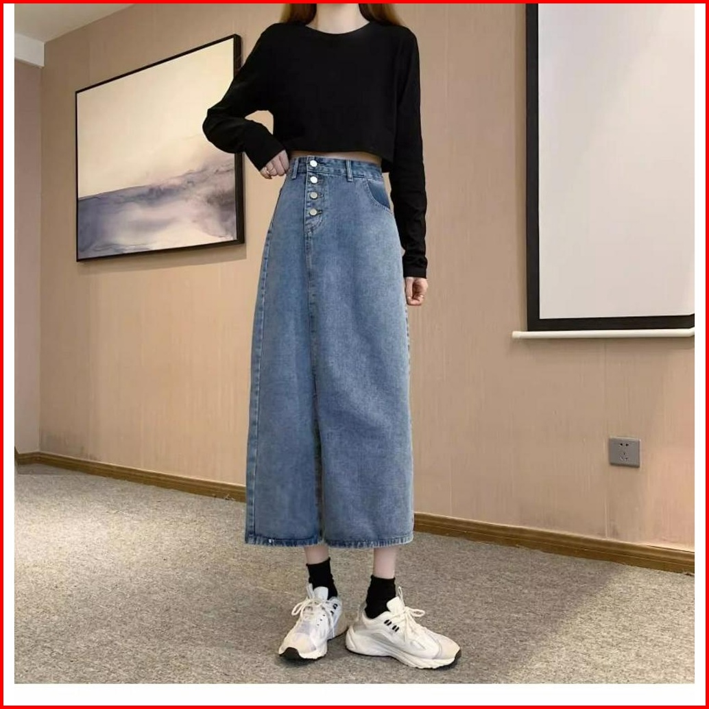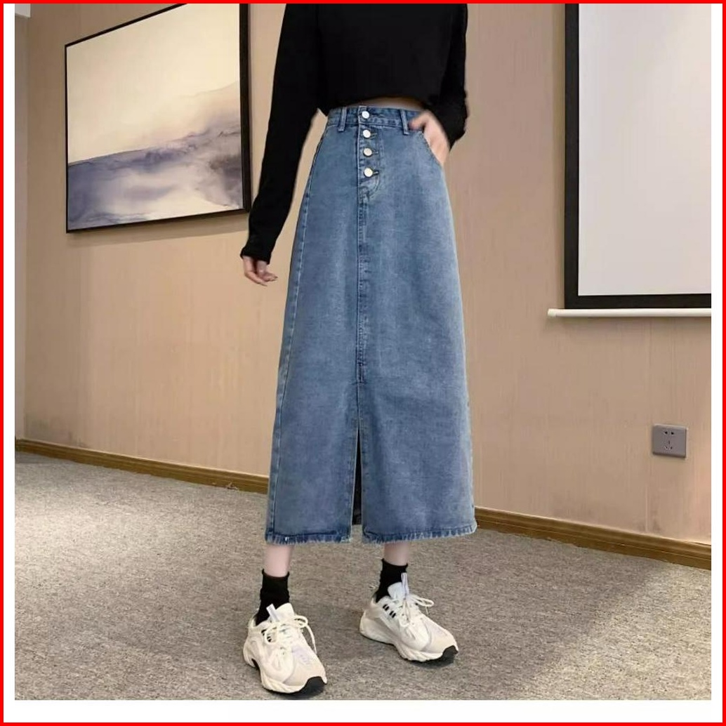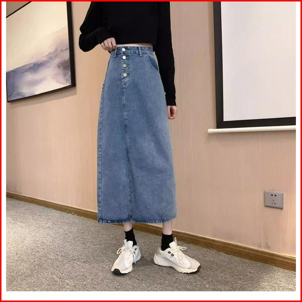 Highwaist Rok Jeans Kasual Fashion A-line Rok Import