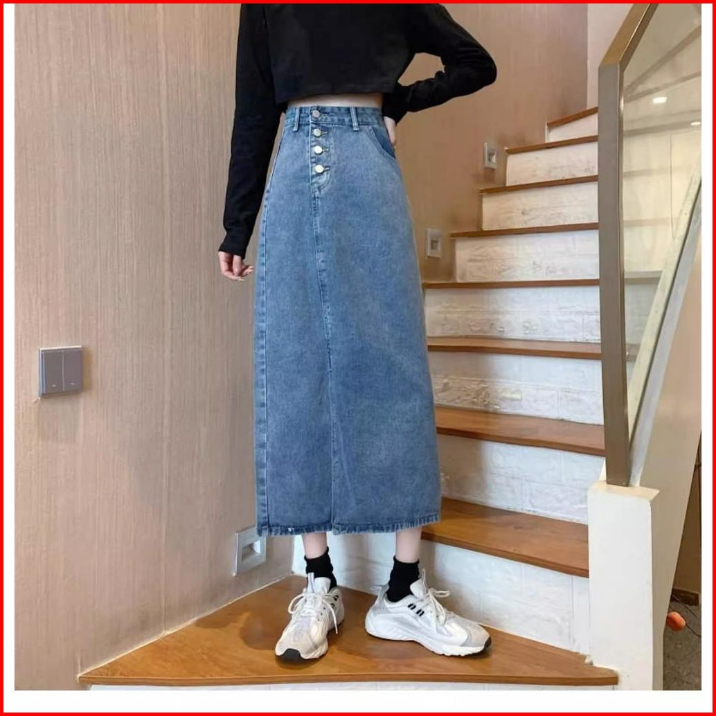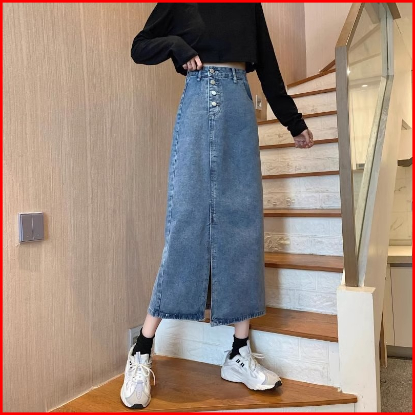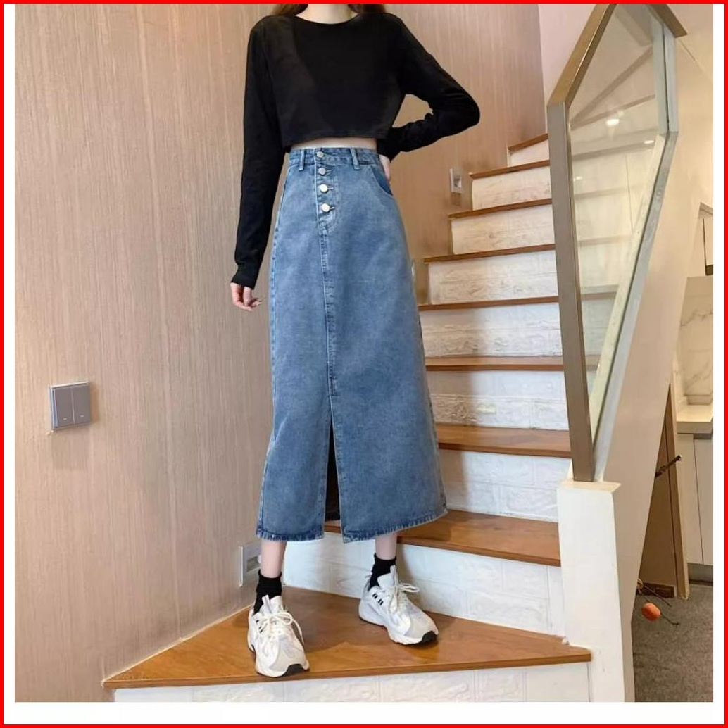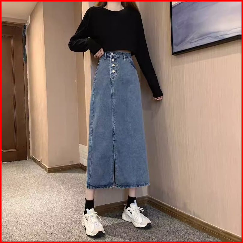 Highwaist Rok Jeans Kasual Fashion A-line Rok Import