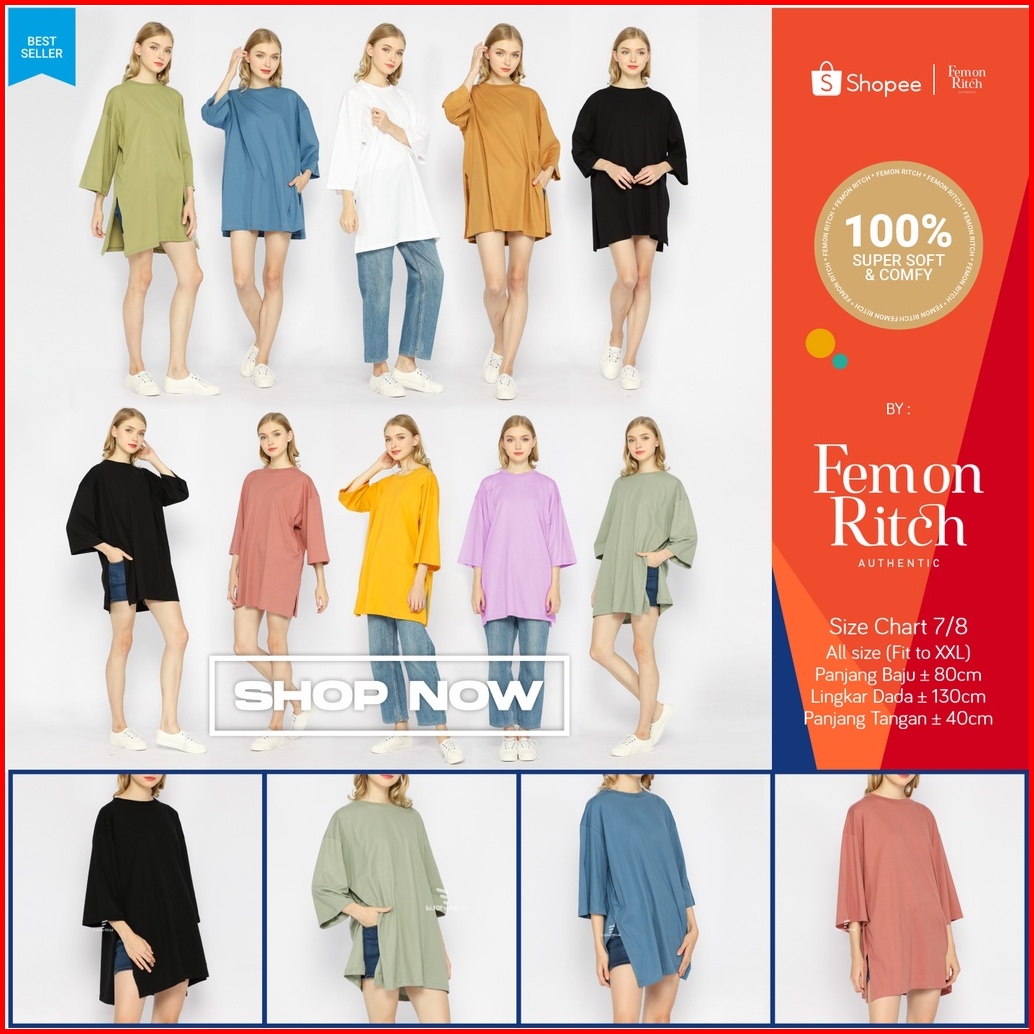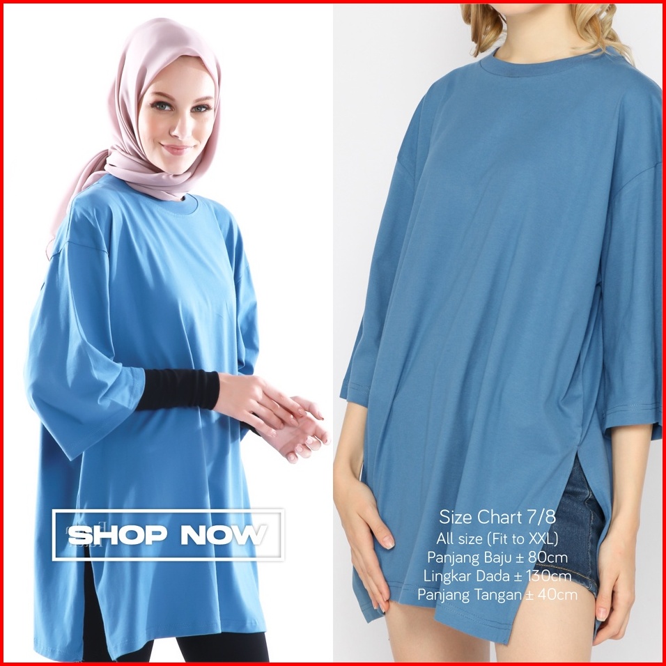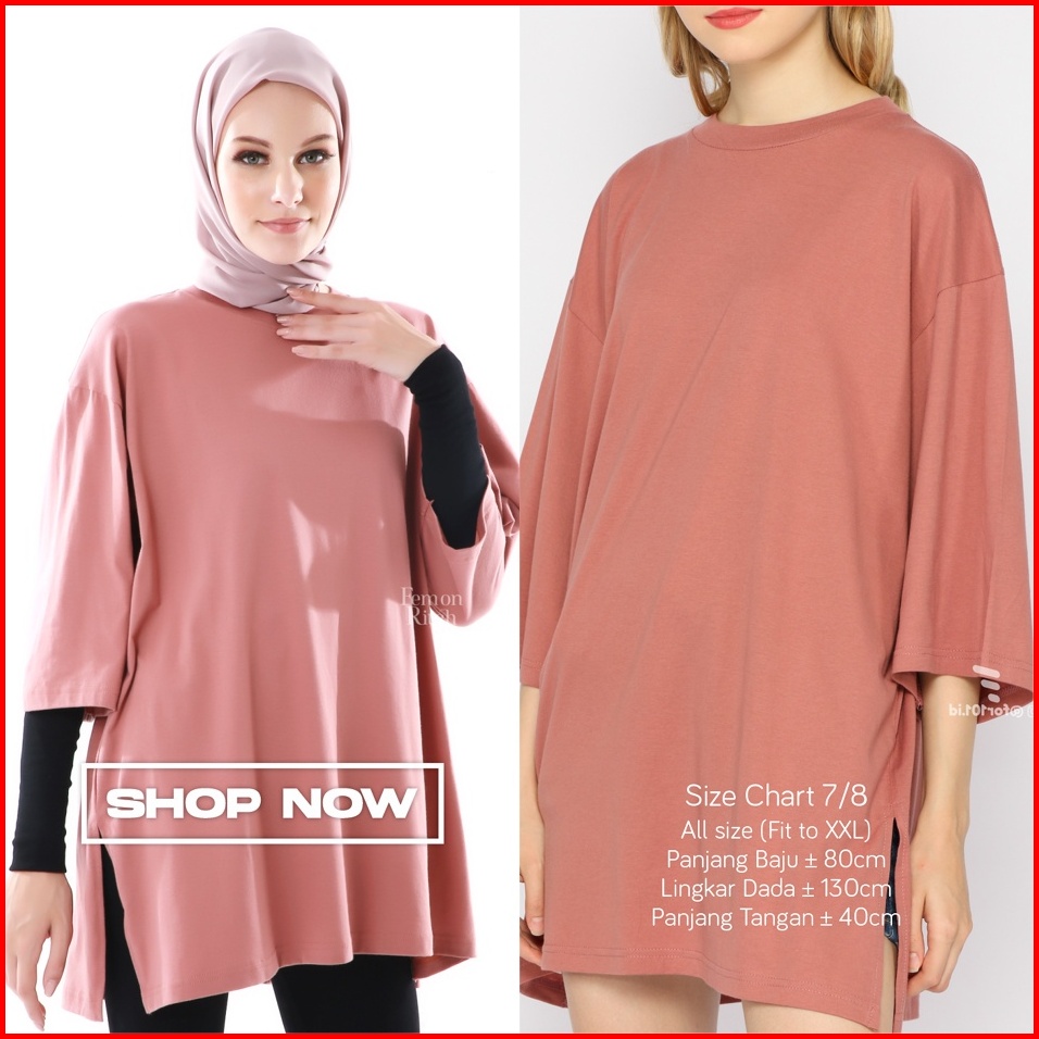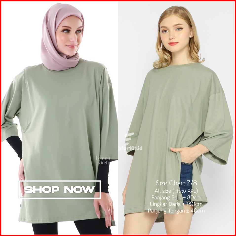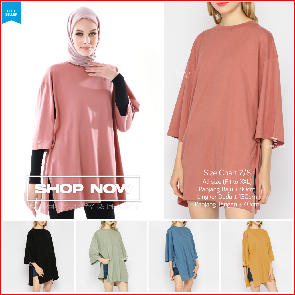 Kaos Oversize Wanita Lengan 7 8 Basic Oversized Top Busui Dan Nonbusui Hijab Friendly