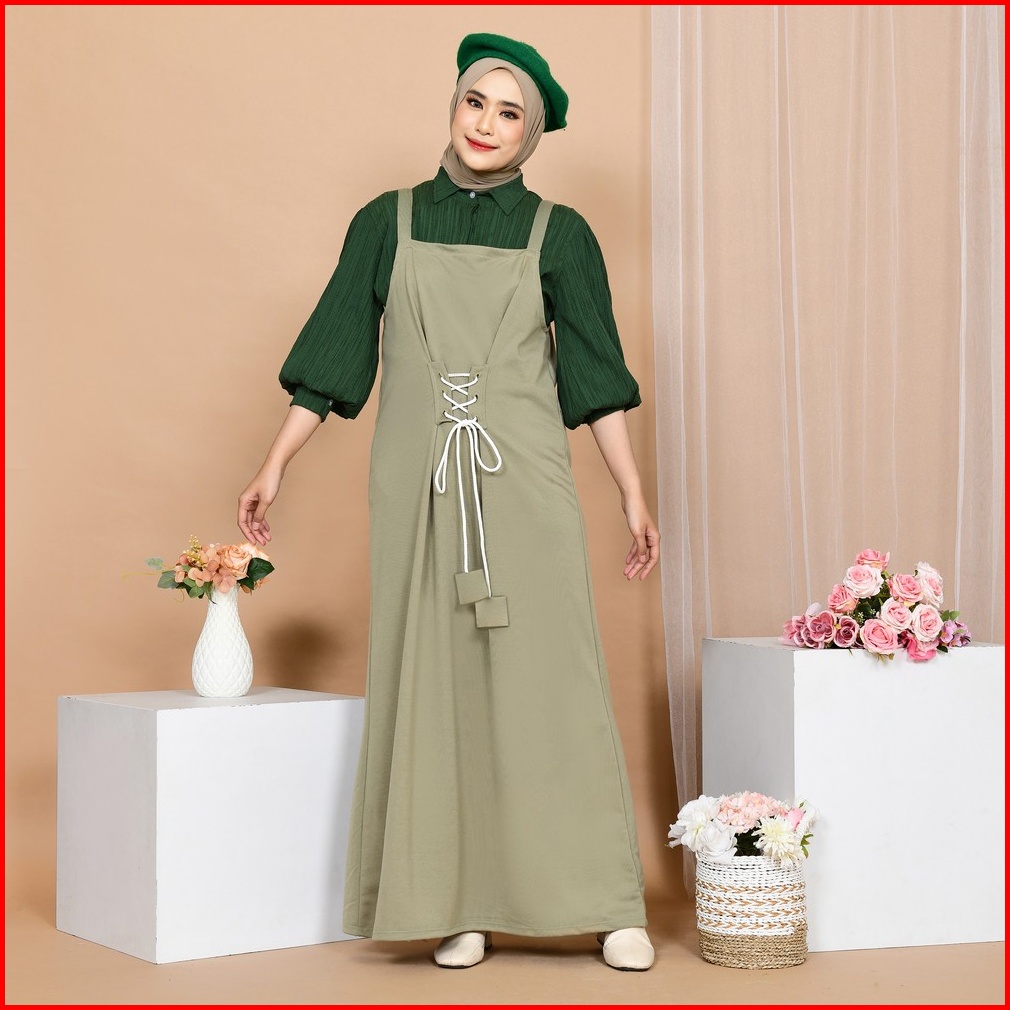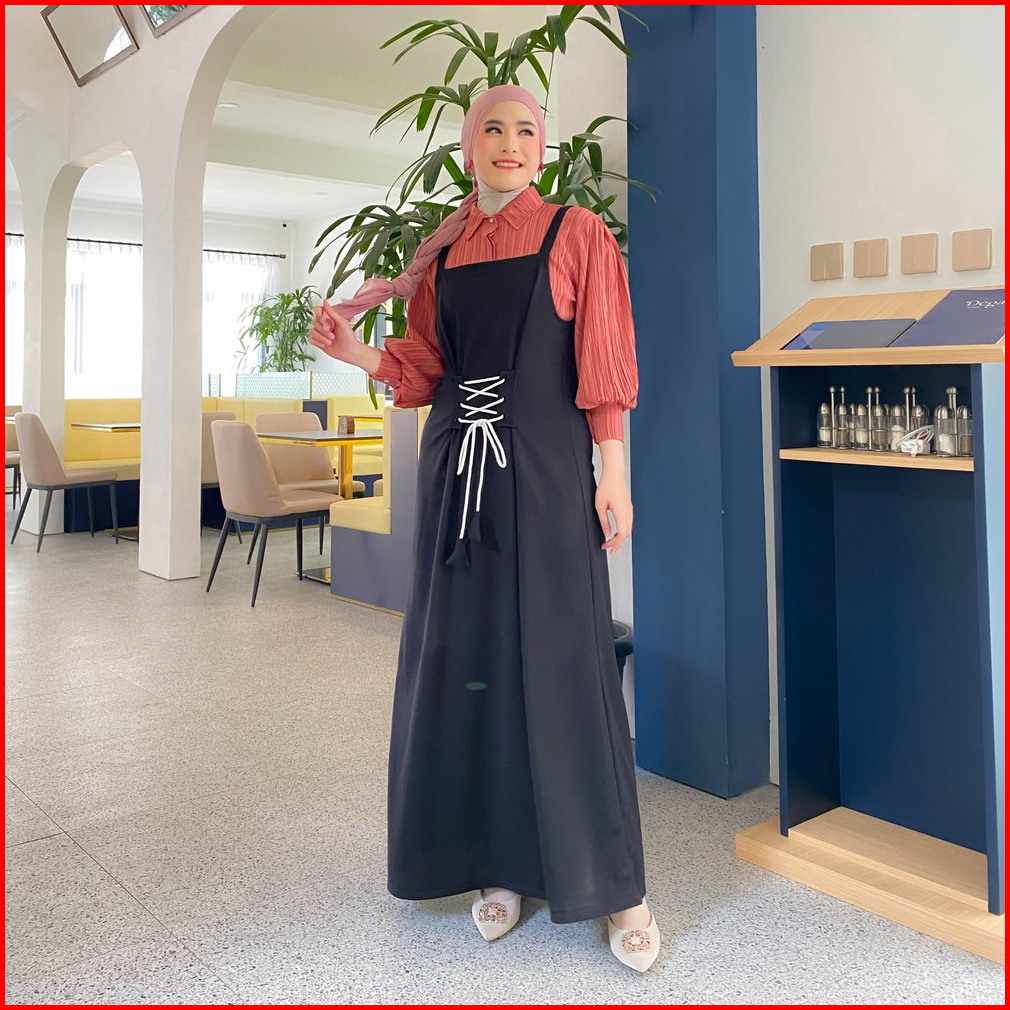 Mybamus X Islahfuada Sienna Overall Dress - Dress Jumpsuit Wanita Dress Kekinian Dress Serut