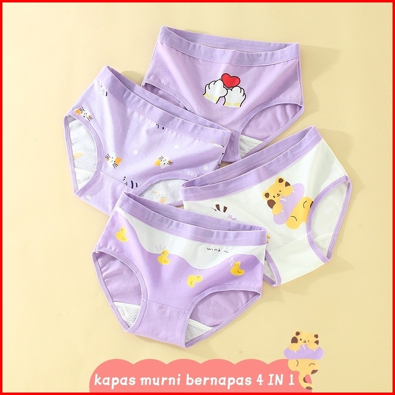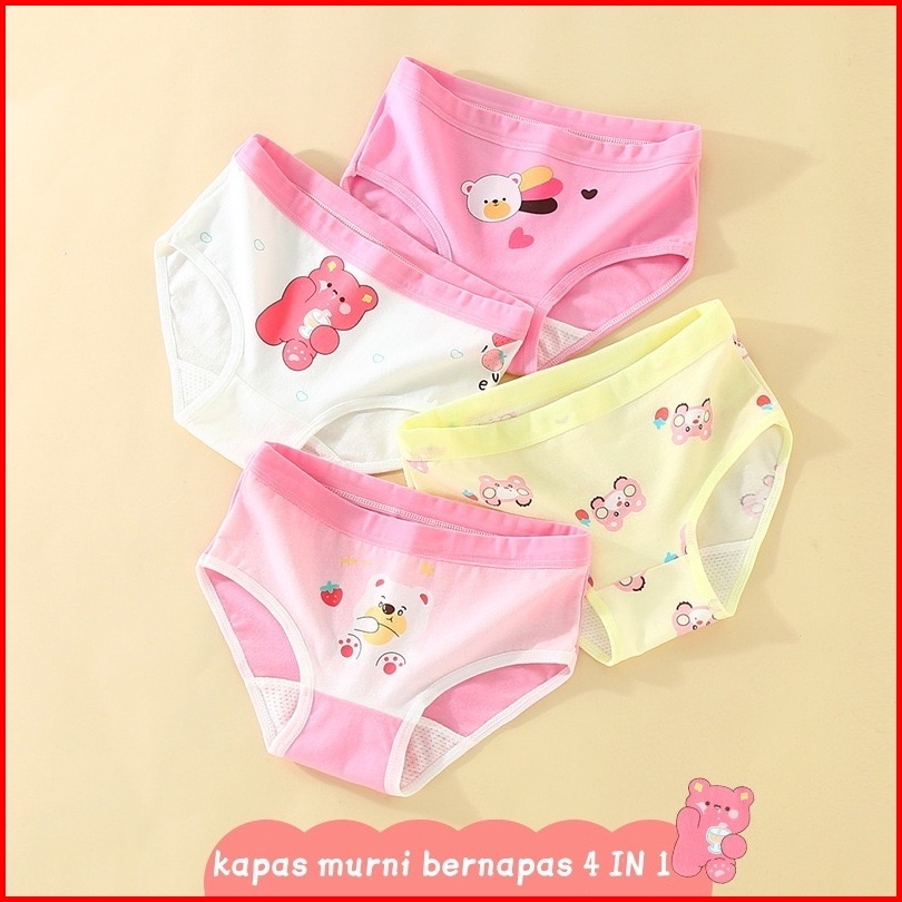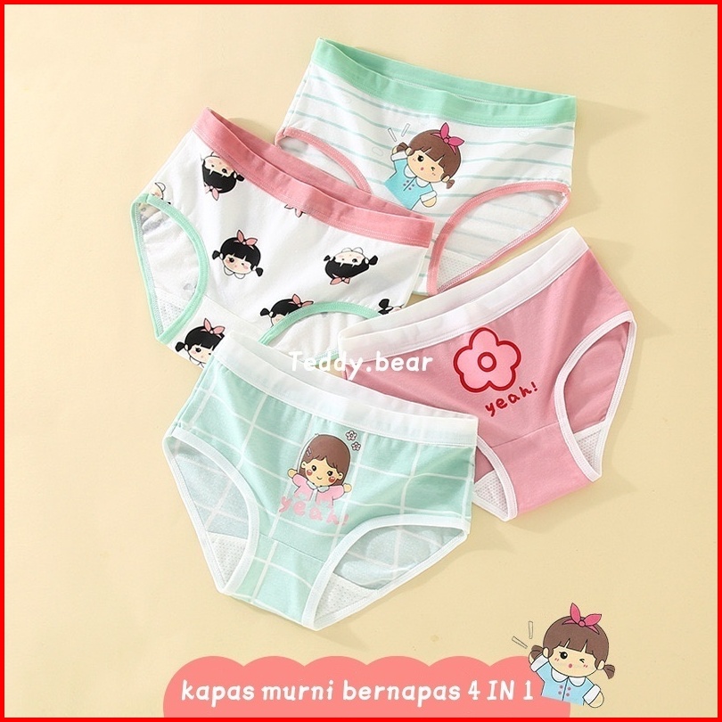 1-12 Tahun Katun Murni Celana Dalam Anak Perempuan Segitiga Versi Fashion Anak Cd 4 Pcs
