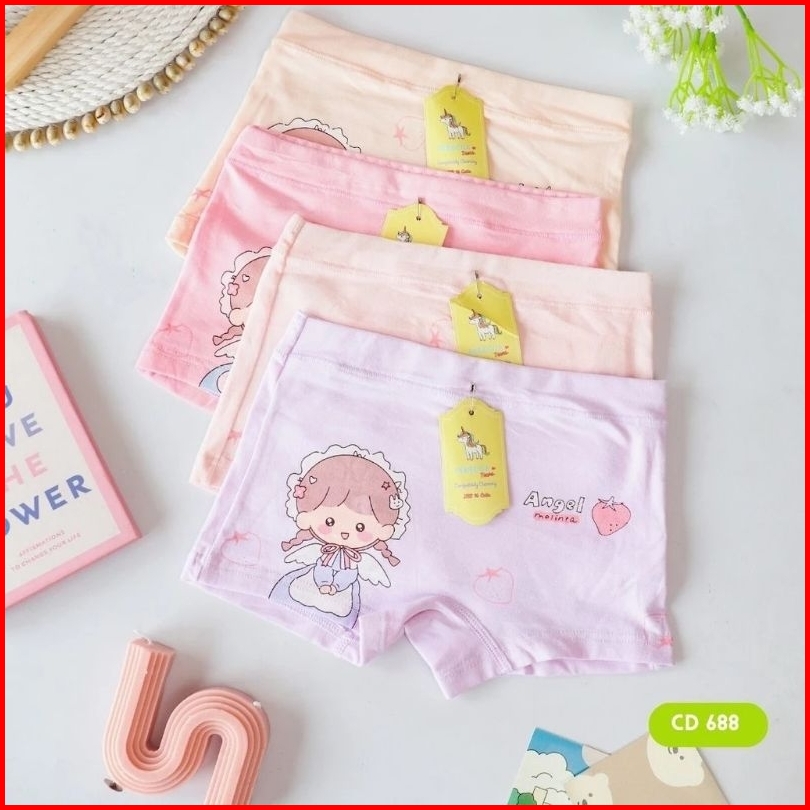 6 Pcs Boxer Cd Celana Dalam Anak Perempuan Random Motif Warna