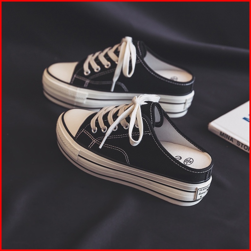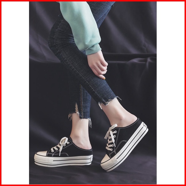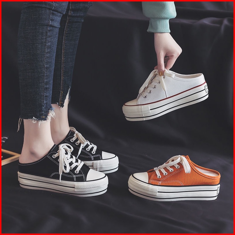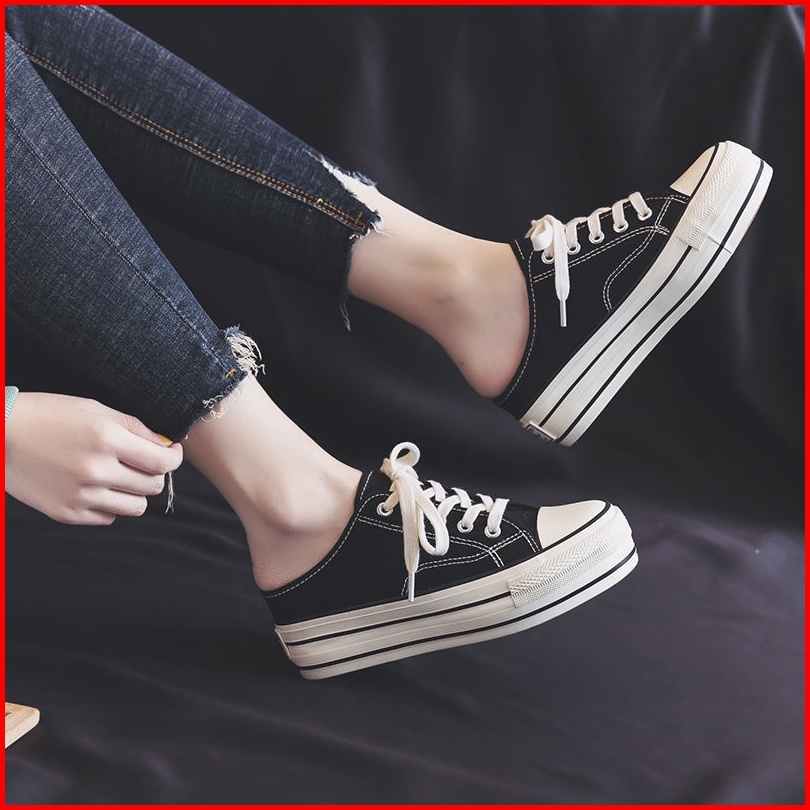Setu Jisoo Free Kotak Sepatu Sneakers Selop Model Platform Tinggi Gaya Korea Kanvas Import 007