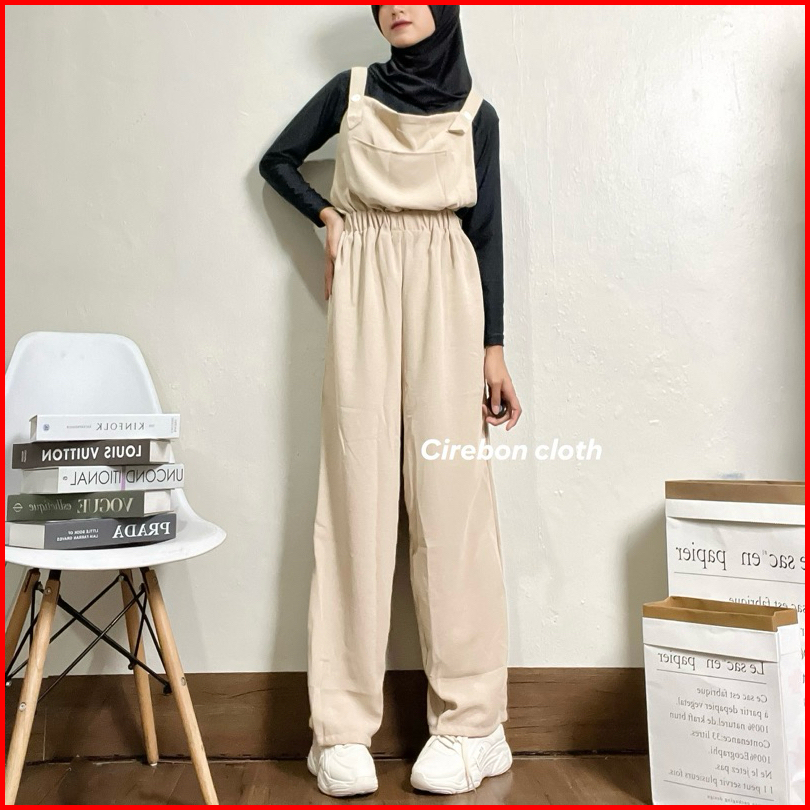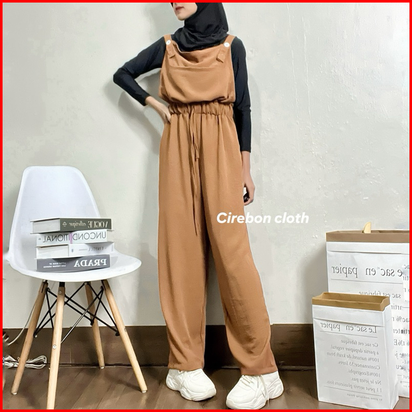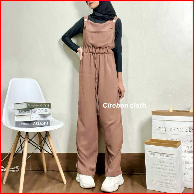 Kiyana Cirebon Cloth - Velia Overall Jumsuit Korean Long Jumpsuit Pakaian Wanita Tanpa Lengan Jumsuit Wanita Baju Kodok