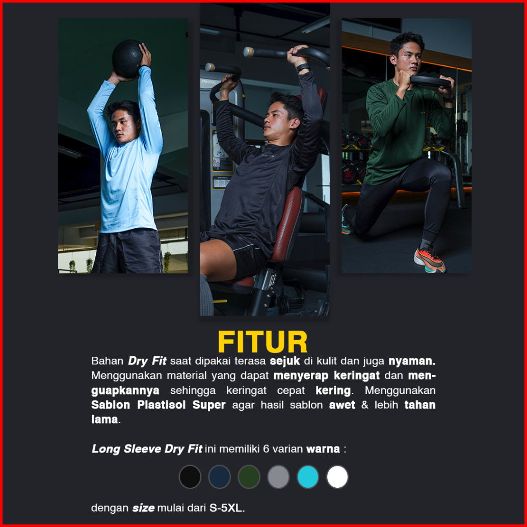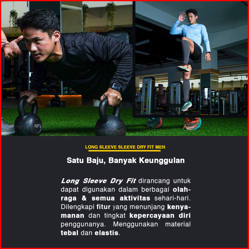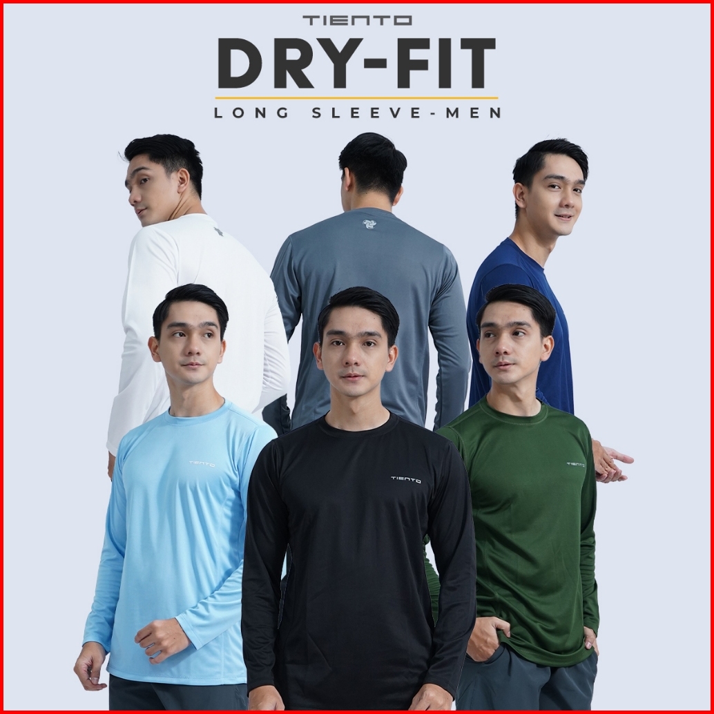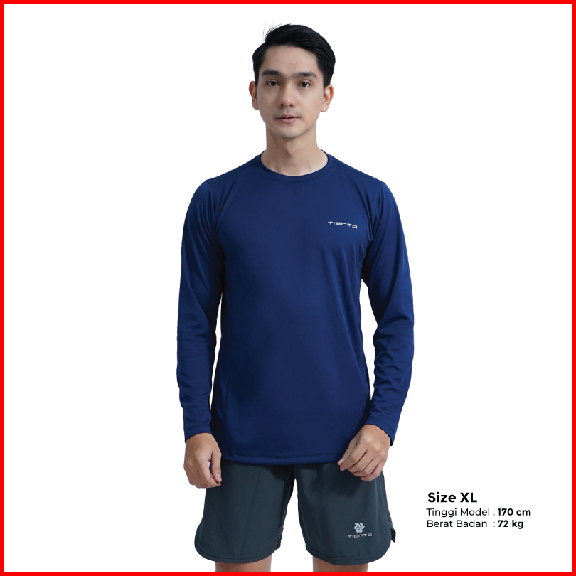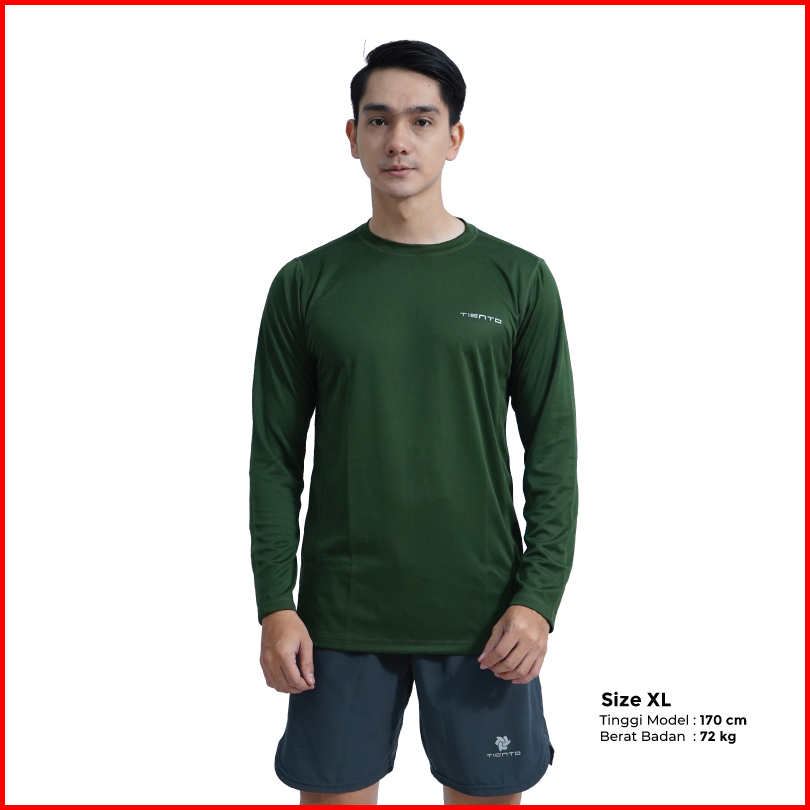 Tiento Kaos Running Dry Fit Lengan Panjang Baju Olahraga Pria Lari Gym Fitness