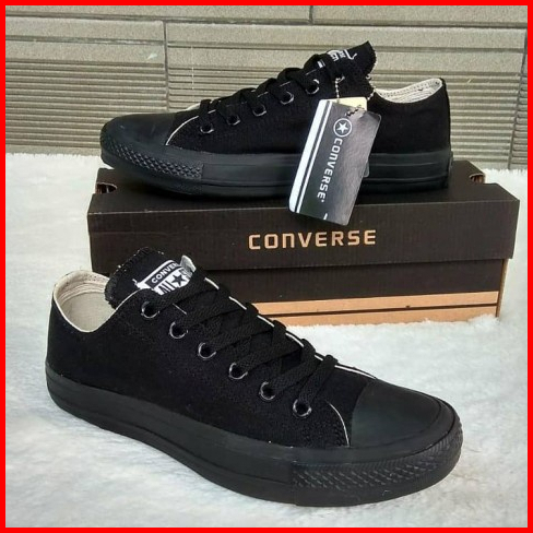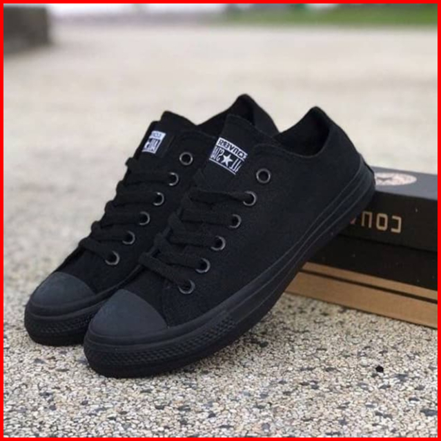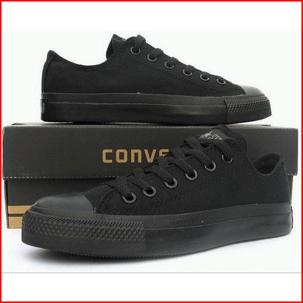Sepatu Sekolah Pria Wanita Convers1995 All Star Pendek Full Hitam Polos Import