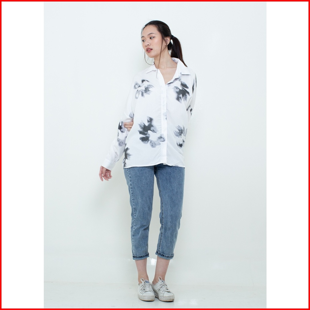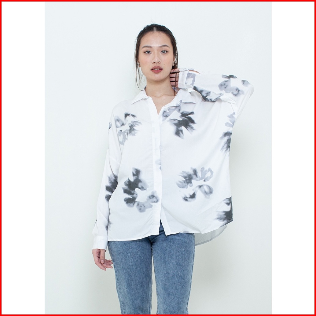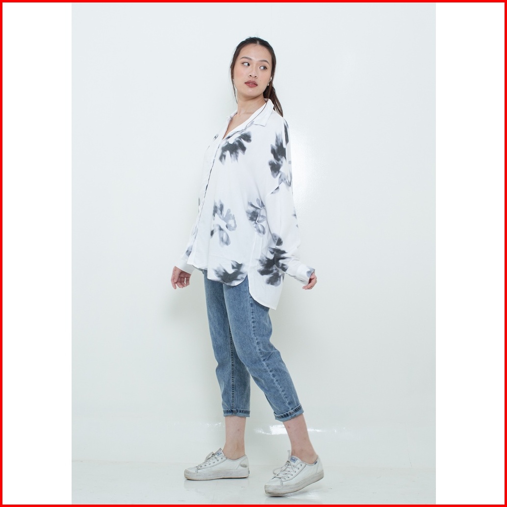 Ixora Hea Oversized Shirt - Kemeja Wanita Oversized Blouse Berkancing