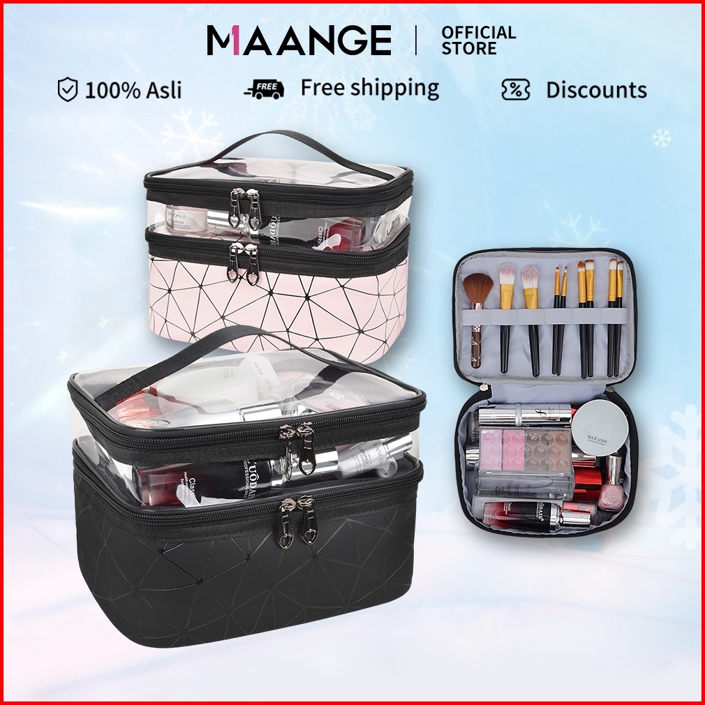 Maange Tas Kosmetik Ganda Kotak Kosmetik Baru Wanita Tas Penyimpanan Kosmetik Portabel Tas Multifungsi 0308