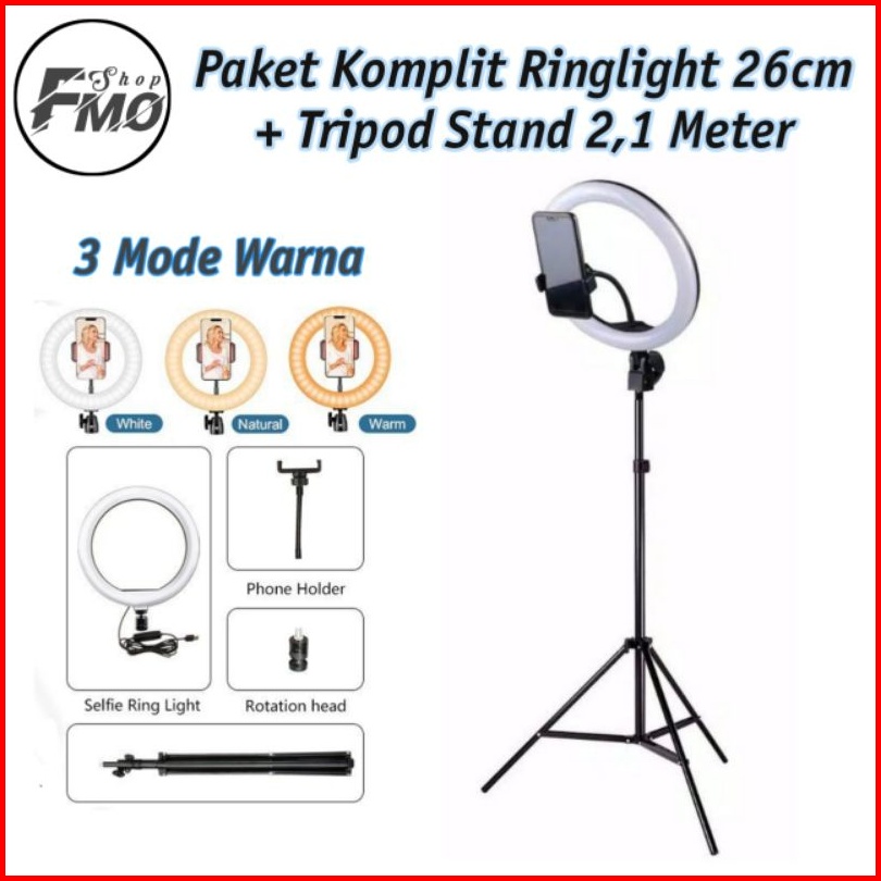 Paket Komplit Ringlight Ring Light 26cm 26 Cm Tripod 2 1 Meter 2 Meter Lampu Selfie Make Up Vlog Vlogger Mua