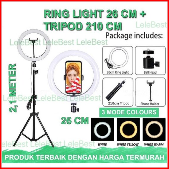 Tripod 2 1 Meter Ring Light 26cm Cocok Untuk Vlog Make Up Dll