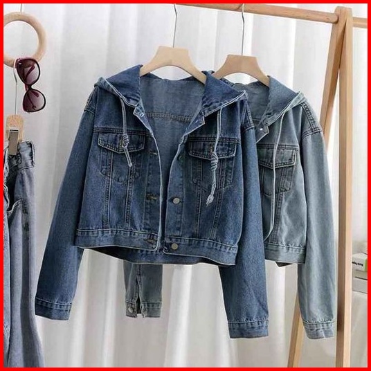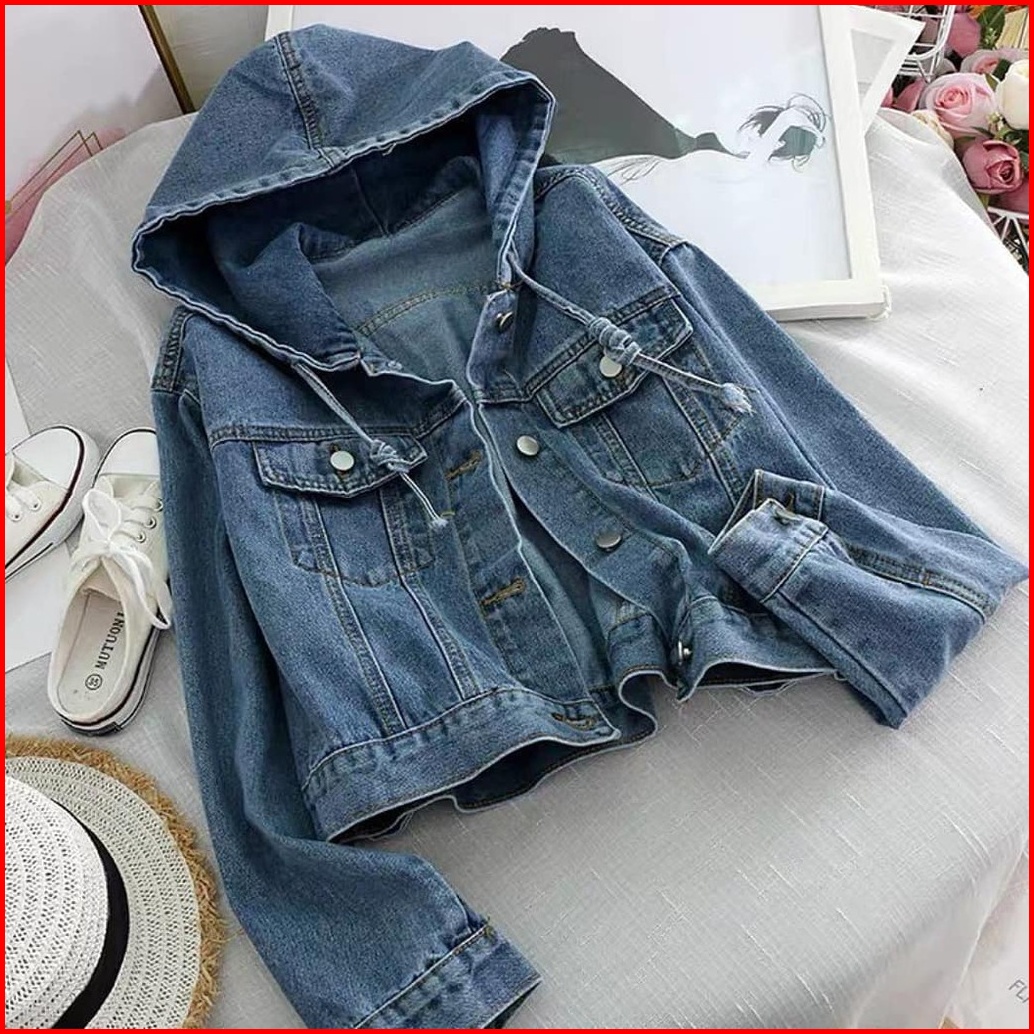 Amelo - Jaket Jeans Wanita Arashi Outwear Nagita Hodie Crop Oversize Korea Style