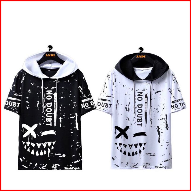 Kaos Hoodie Pendek Pria Kombinasi Sablon Full Prin Kikinian Kaos Kombinasi Sablon Terlaris