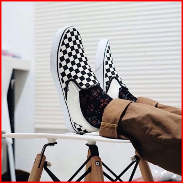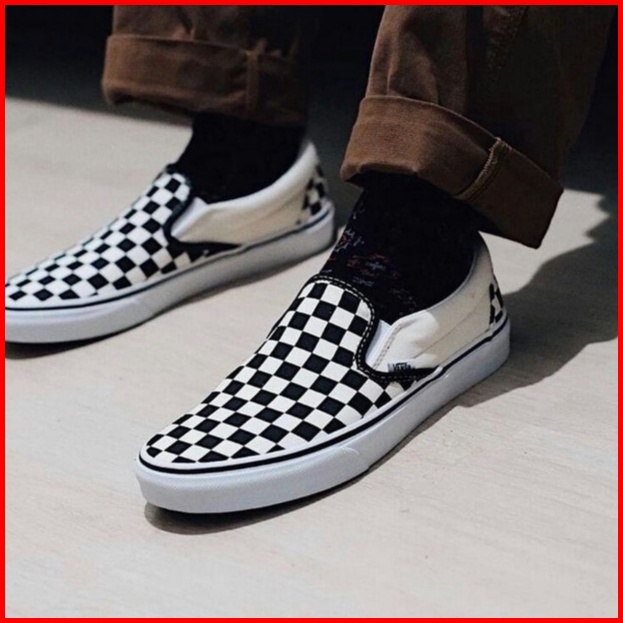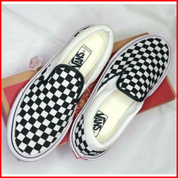 Sepatu Vans46 Slipon Checkboard Catur Kotak Putih Kualitas Premium Sepatu Pria Dan Wanita Skateboard