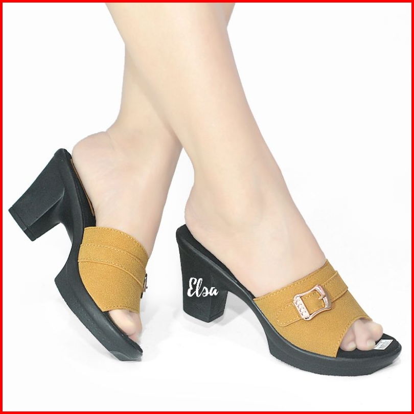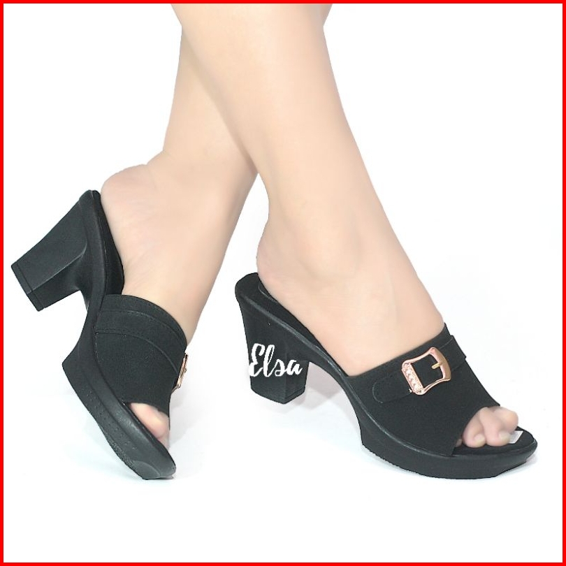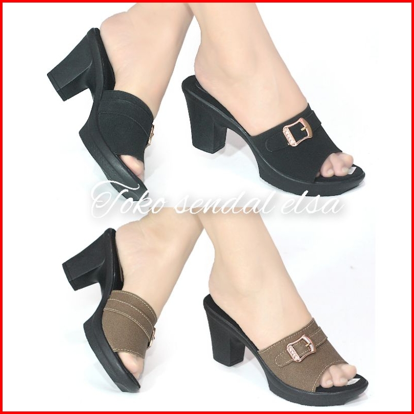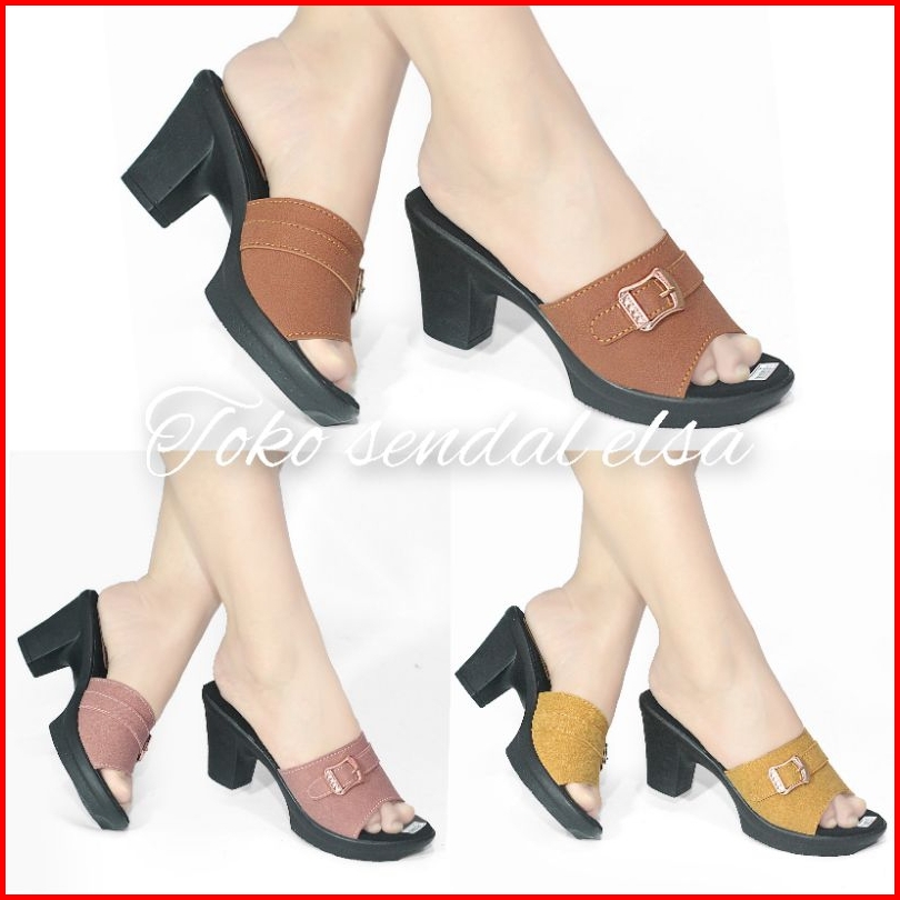 Sepatu High Heels Wanita Terbaru Sandal Hak Tahu Aksen Tali Strap Open Toe Sendal Pesta Hak Tinggi Chungky Block Heel Ca
