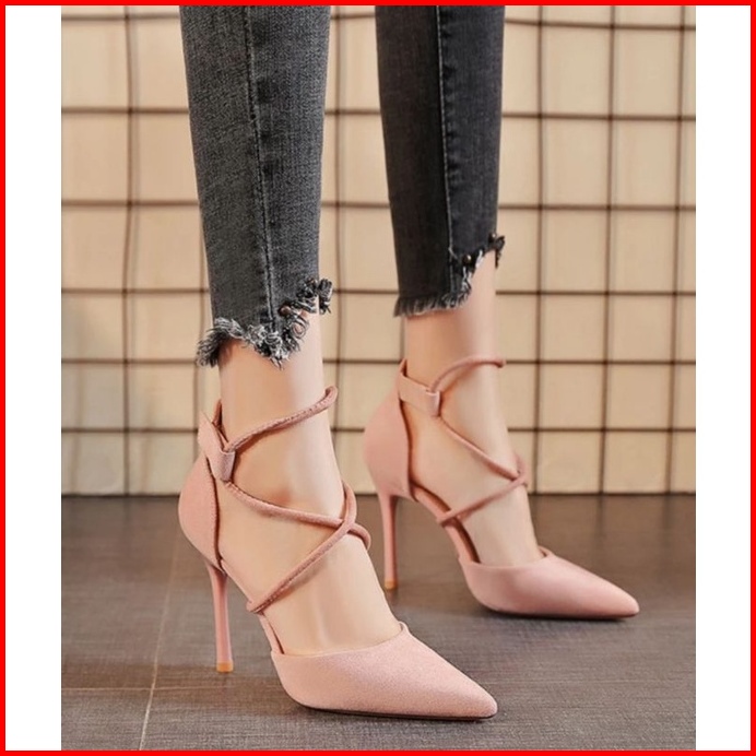 Sandal Heels Runcing Tali Depan Wanita Terbaru 2022 Heels Wanita Kekinian Tinggi 7cm