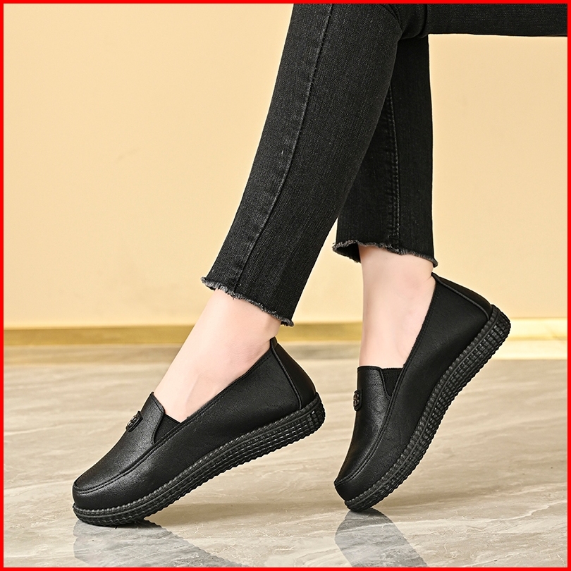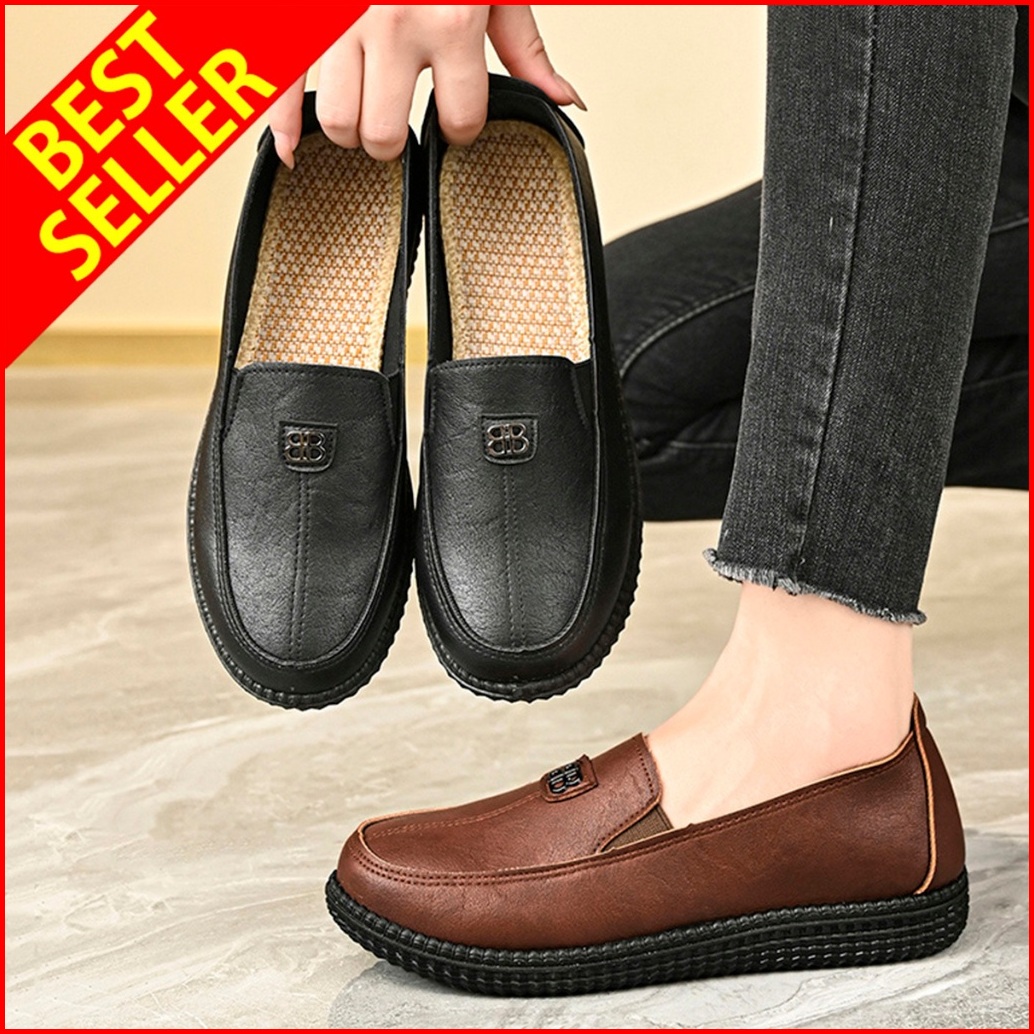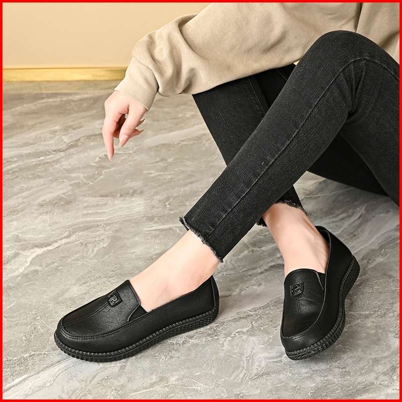 Qingshui Sepatu Flat Wanita Kulit Korea Fashion Terbaru Sepatu Kantor Elegan Nyaman Bernapas Ringan