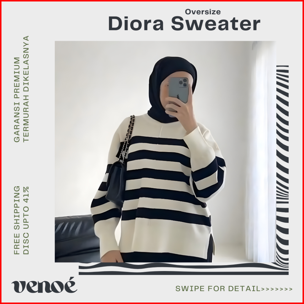 Venoe - Sweater Rajut Premium - Knit Oversize Sweater Diora Atasan Maudy Sweater Baju Knitwear Wanita Tebal