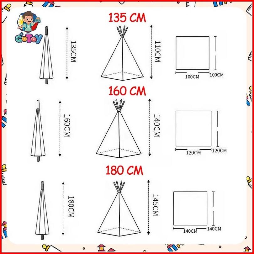 110 160 180cm Kids Teepee Tenda India Anak Portable Playhouse Canvas Indoor Outdoor Ruangan Princess Castle Princess