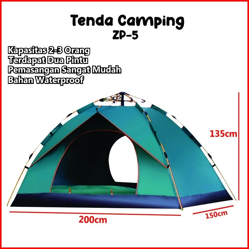 Barnik88 Tenda Camping Lipat Otomatis Kapasitas 2-4 Orang Tenda Camping Outdoor Praktis Waterproof