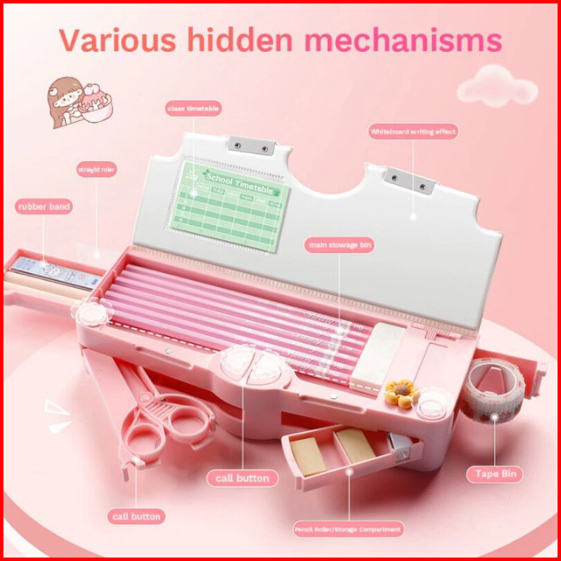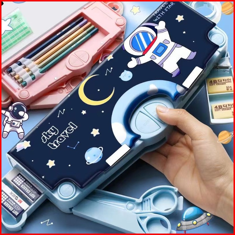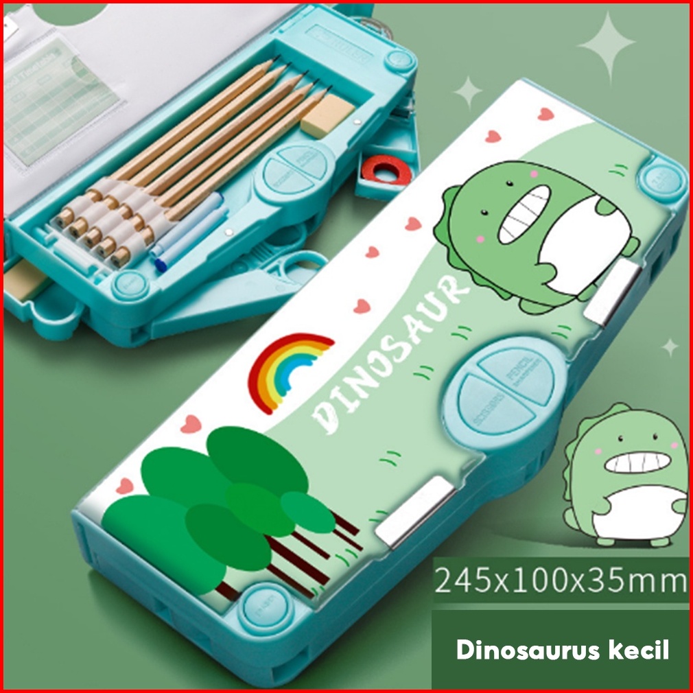 Tempat Pensil Multifungsi Motif Untuk Anak Kotak Pensil Pola Kartun Lapisan Ganda Dan Tunggal Dengan Rautan Kapasitas