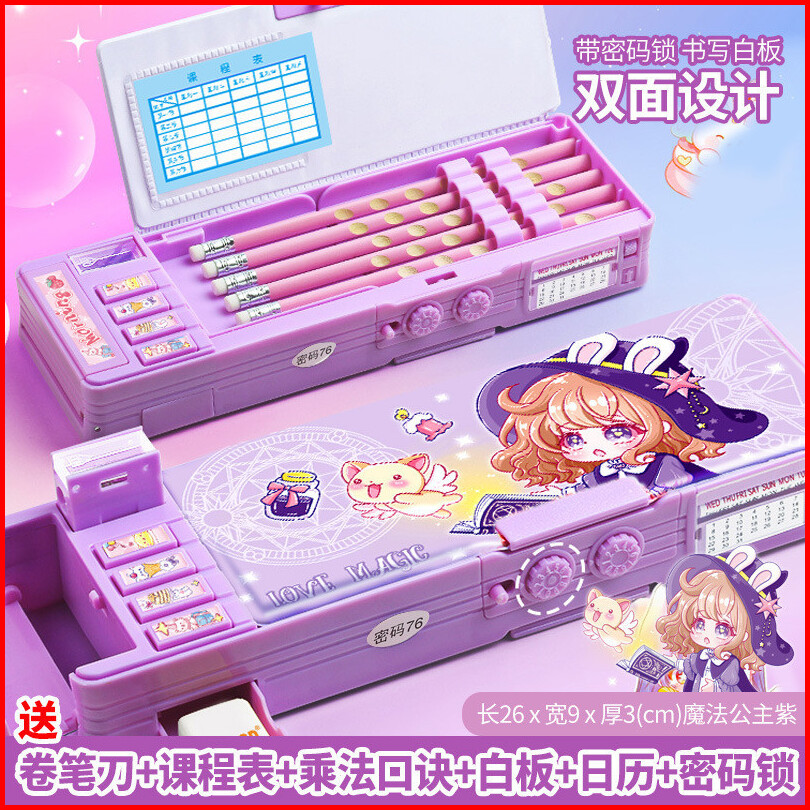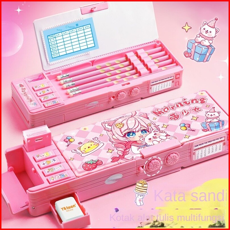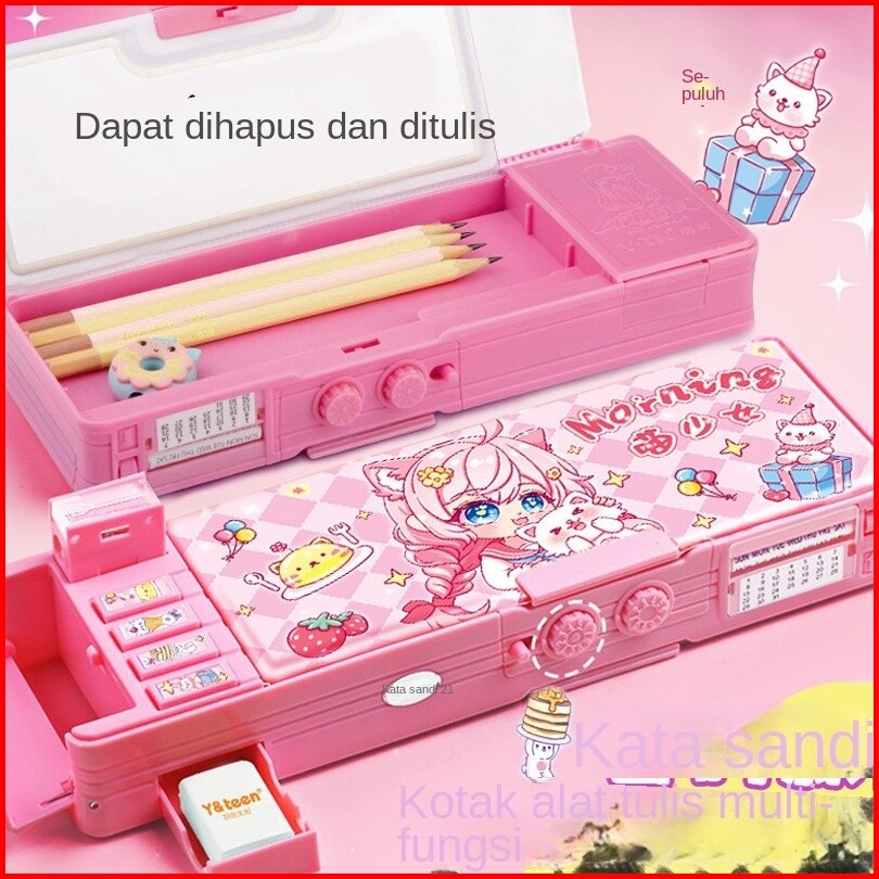 Kotak Alat Tulis Gadis Kotak Pensil Kata Sandi Multi-fungsi Wanita Yang Cocok Untuk Siswa Kelas 1-3 Tk