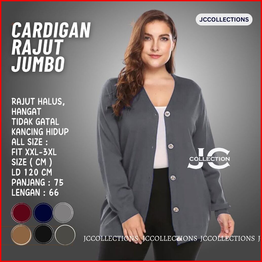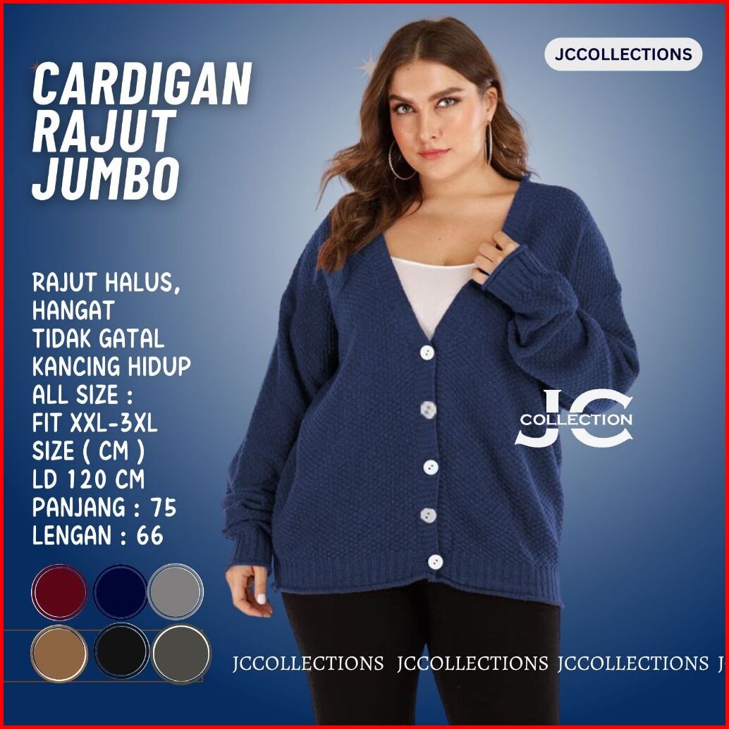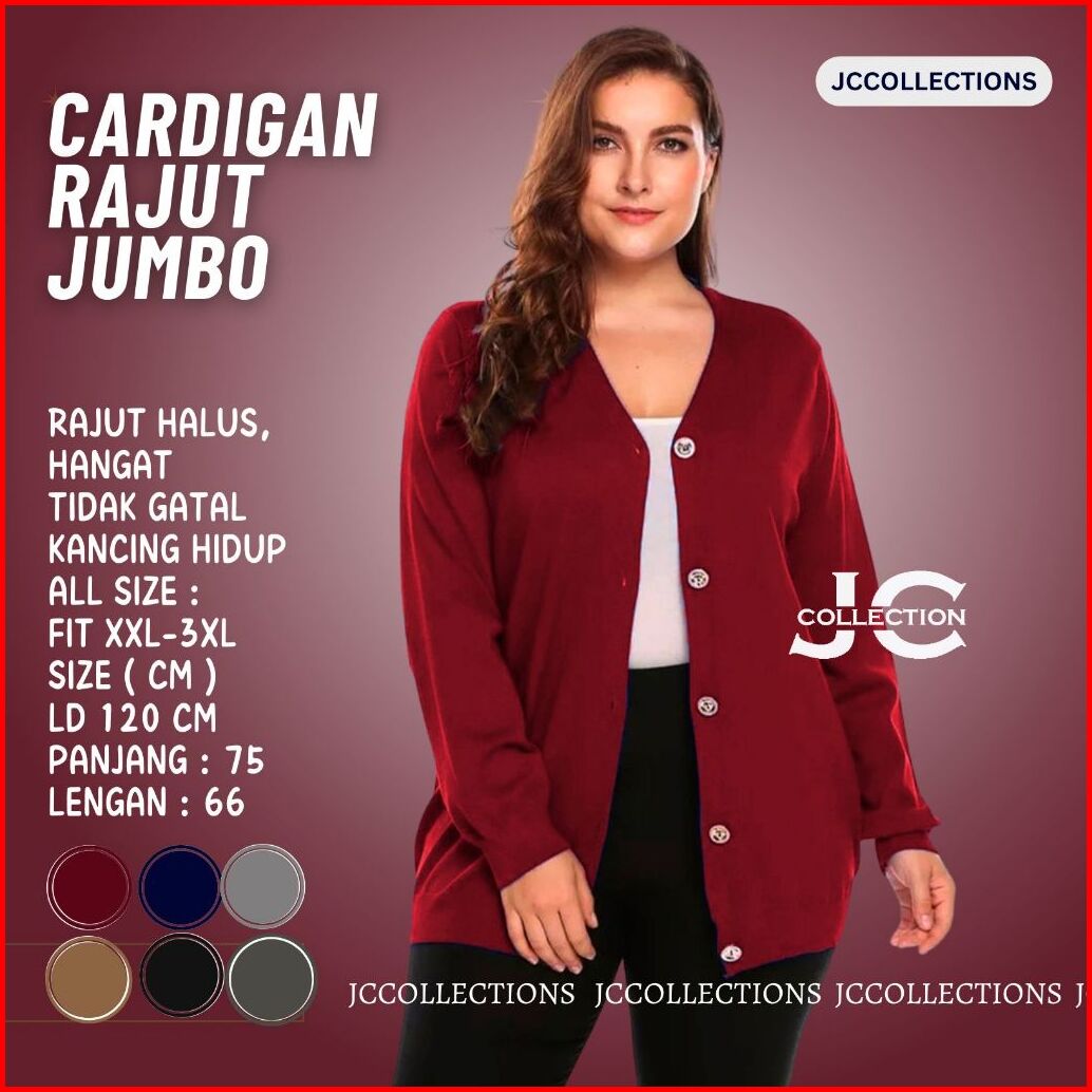Cardigan Wanita Big Size Jumbo Rika Cardigan Rajut V Neck Size Besar - Jccollections