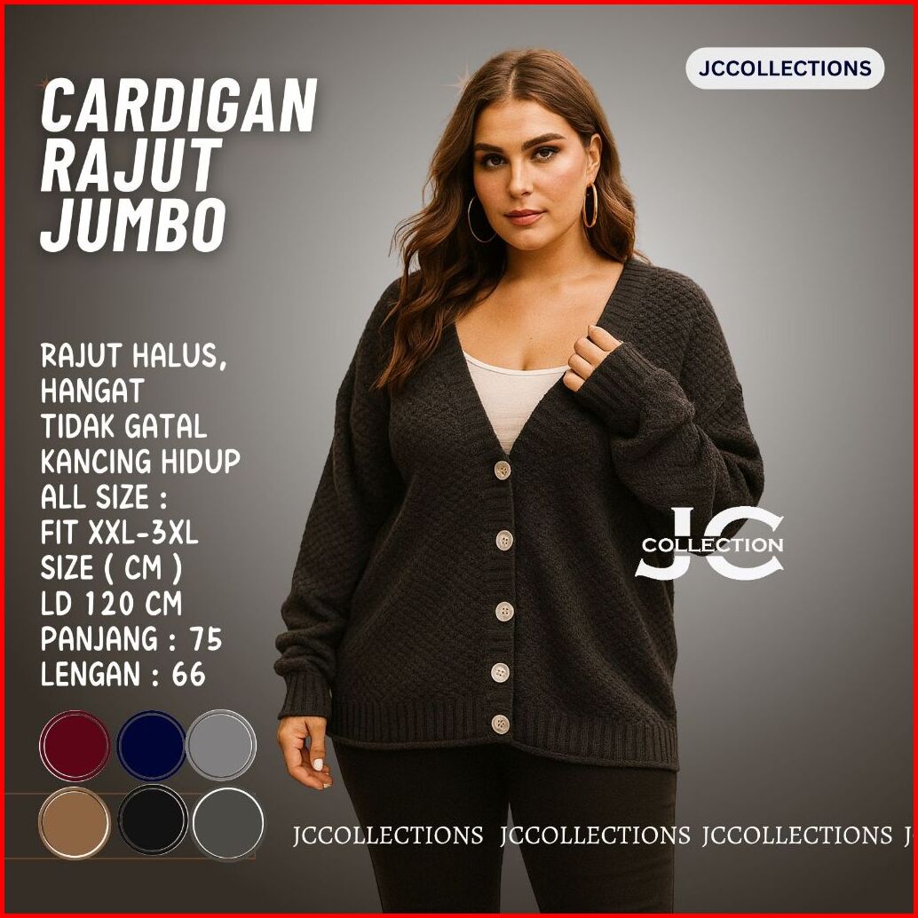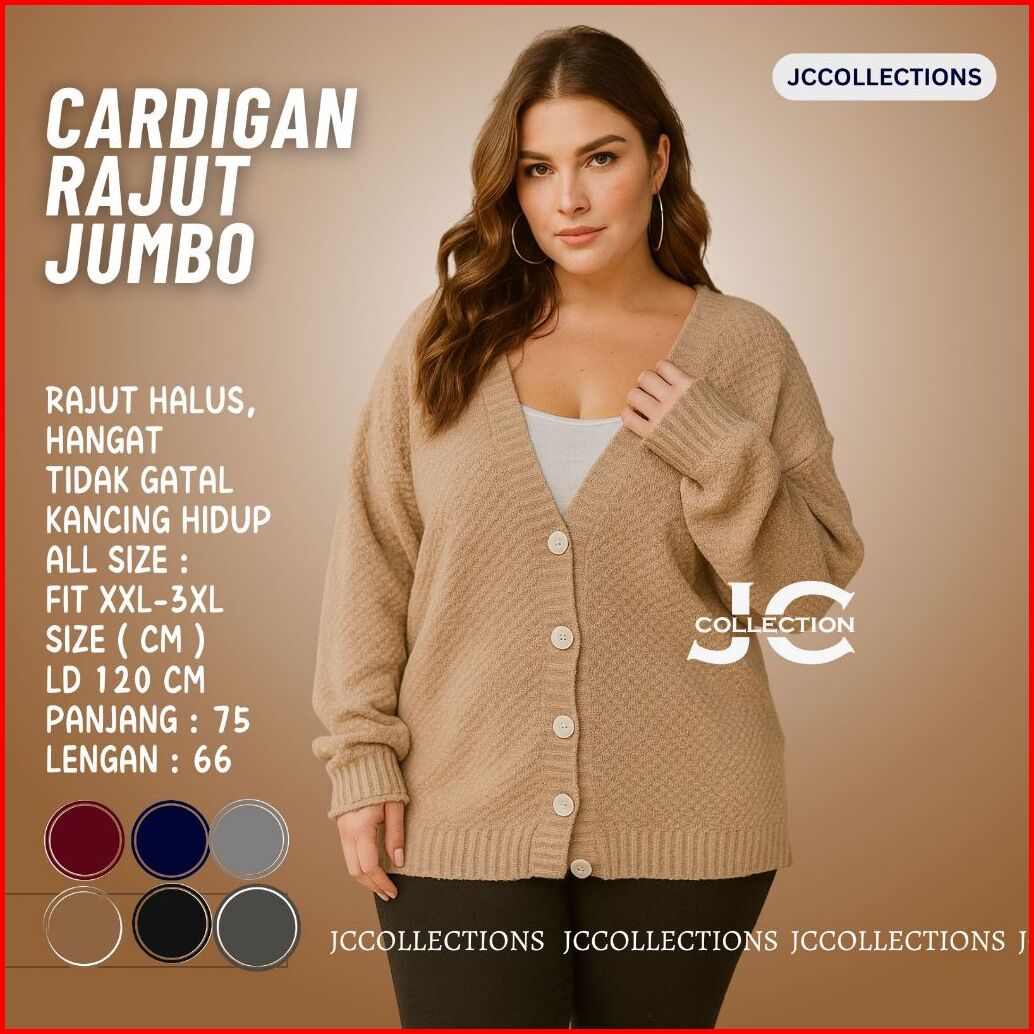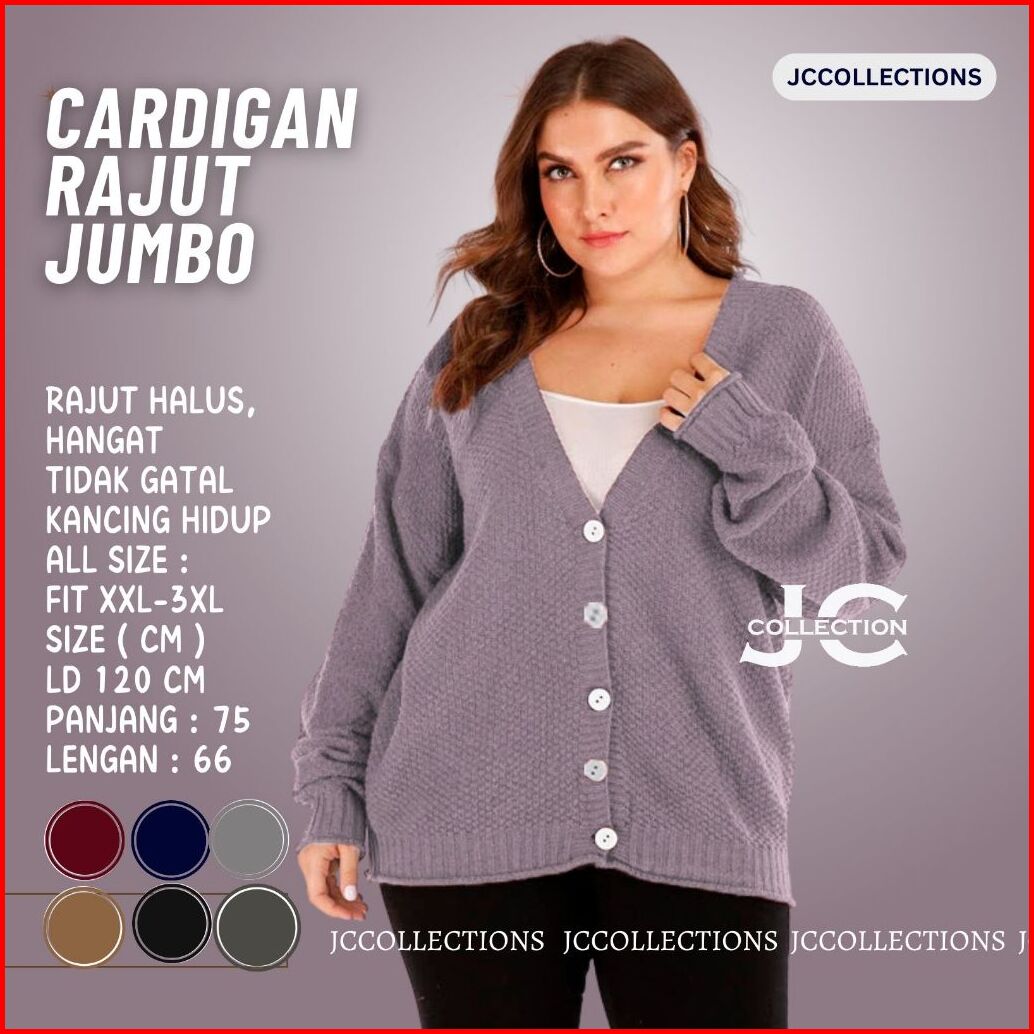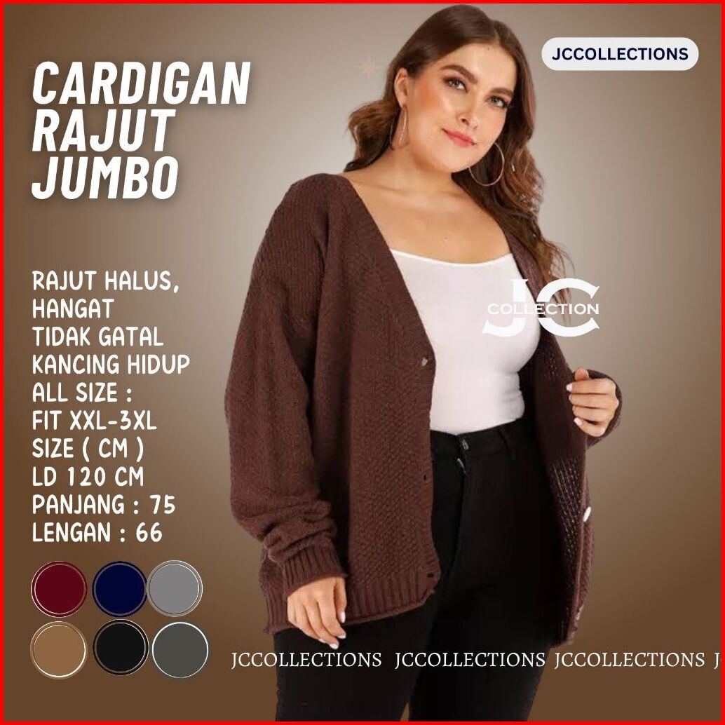 Cardigan Wanita Big Size Jumbo Rika Cardigan Rajut V Neck Size Besar - Jccollections