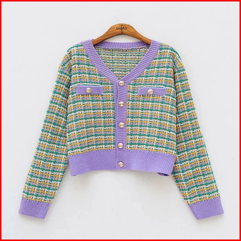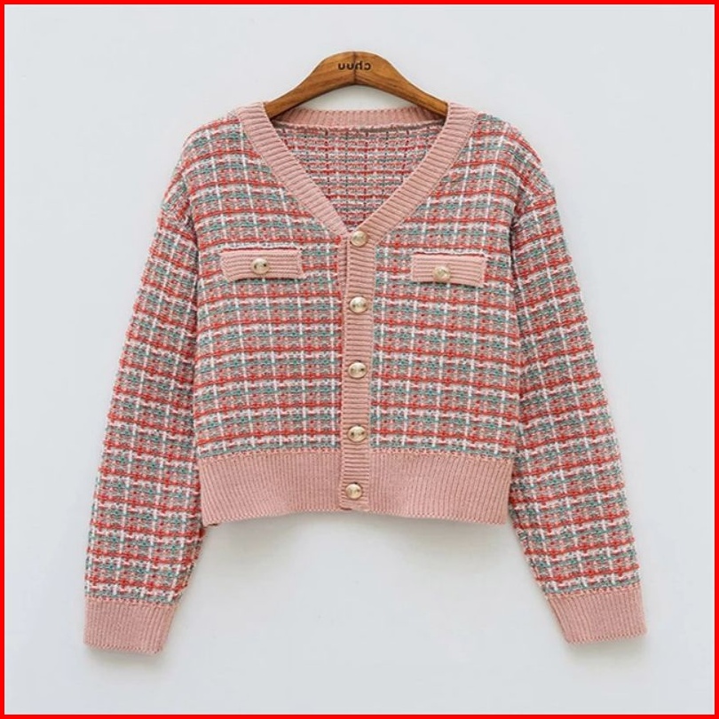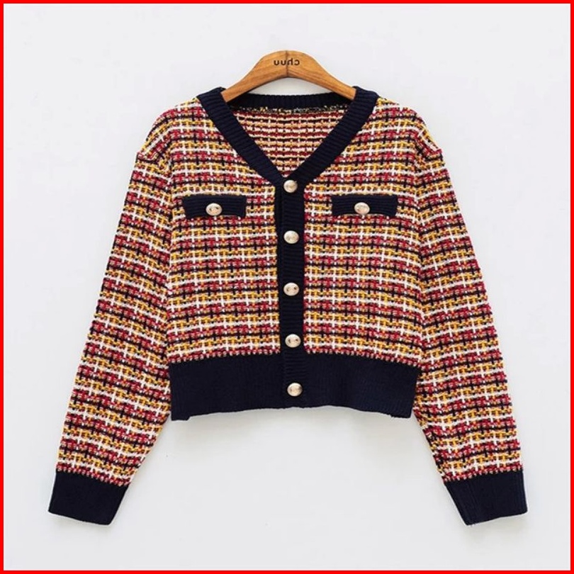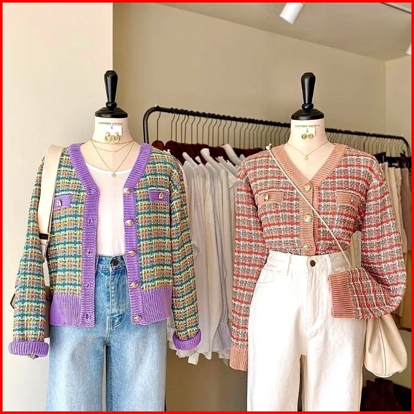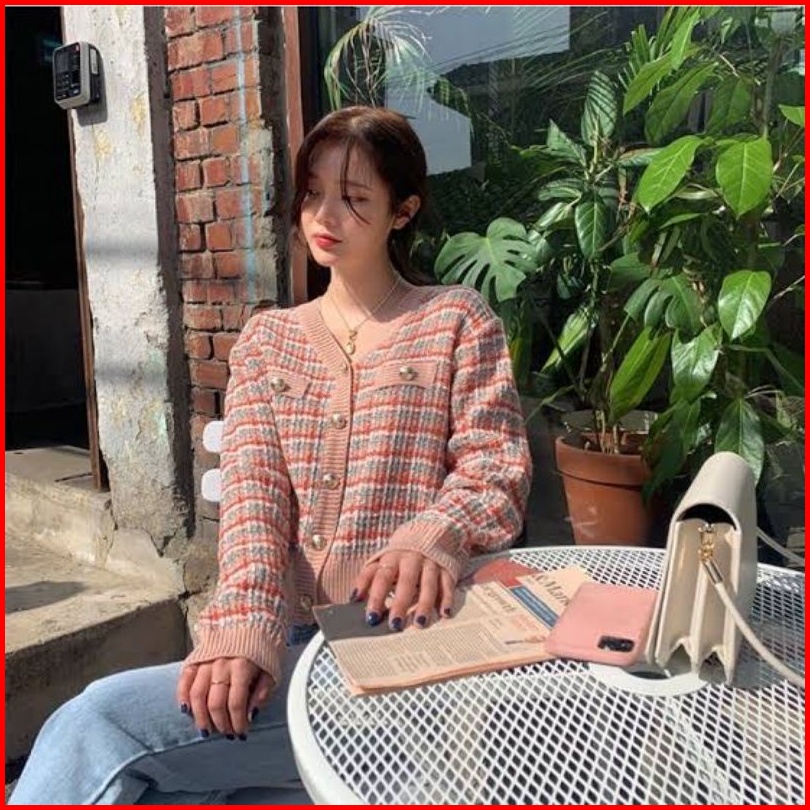 Cardigan Tweed Crop Tebal Korean Style Premium