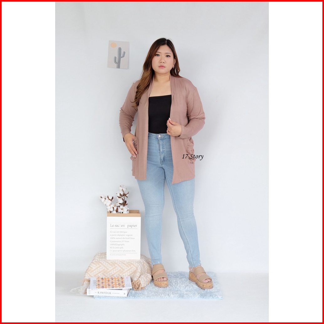 Kardigan Wanita Jumbo Ld 120cm - 140cm Saku Polos Cardigan Polos Big Size Outwear Kardi Oversize