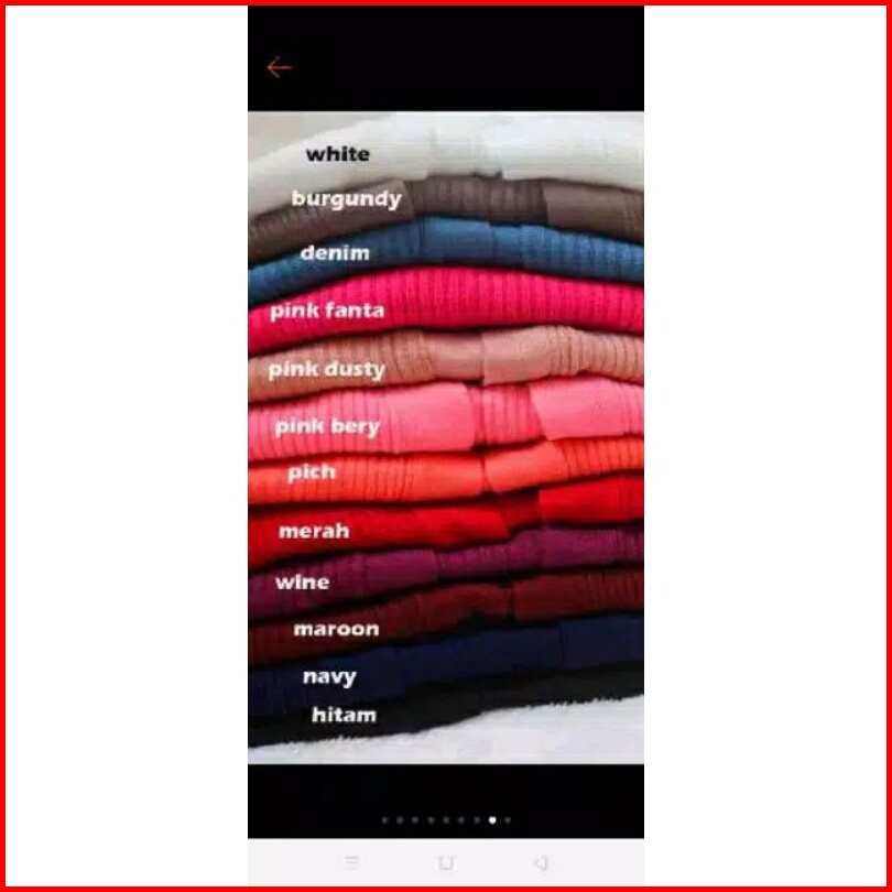 Hitam, Maroon, Burgundy, Brounze, Coral, Hijau Tua, Navy, Mustard, Dusty Pink, Denim, Abu Tua, Mint, Avocado, Krem Mocca, Lilac