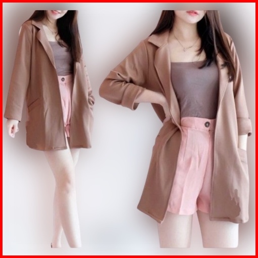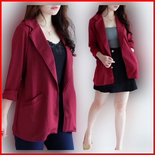 Hawari Fashion - Blazer Scuba - Baju Atasan Blazer Wanita Korea Terbaru 2023 Bahan Scuba Premium - Blazer Kerja Wanita T