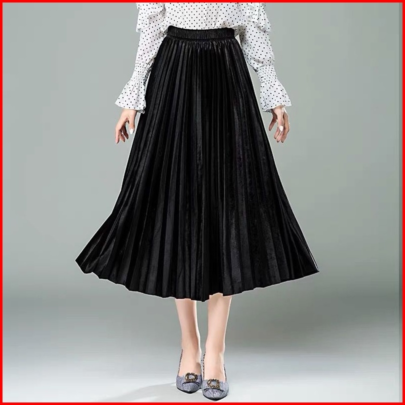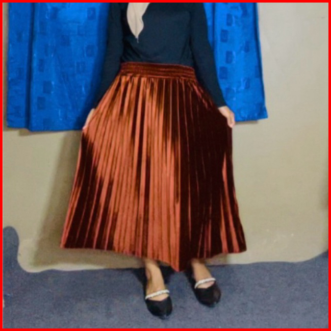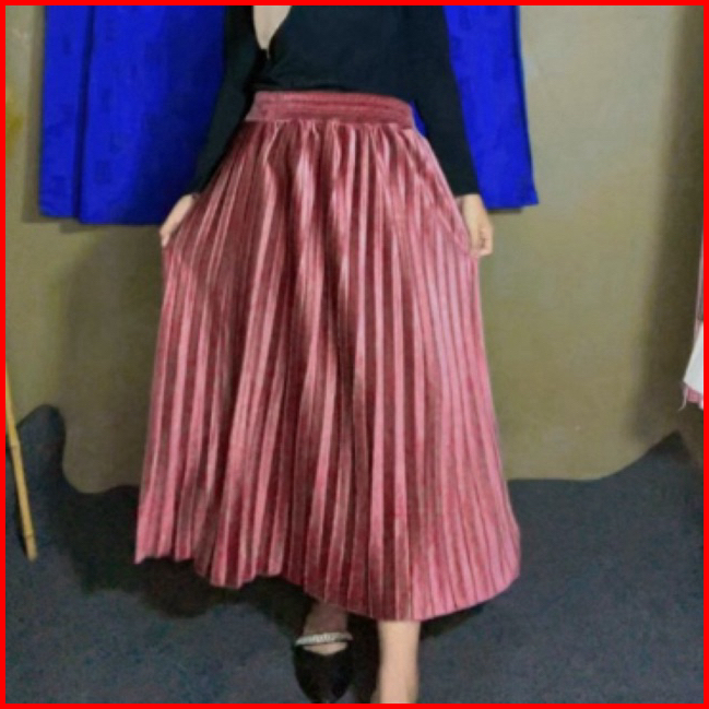 Rok Plisket Velvet Bludru Pendek 7 8 Bludru Velvet Premium
