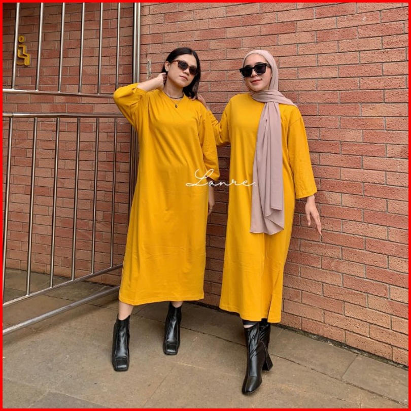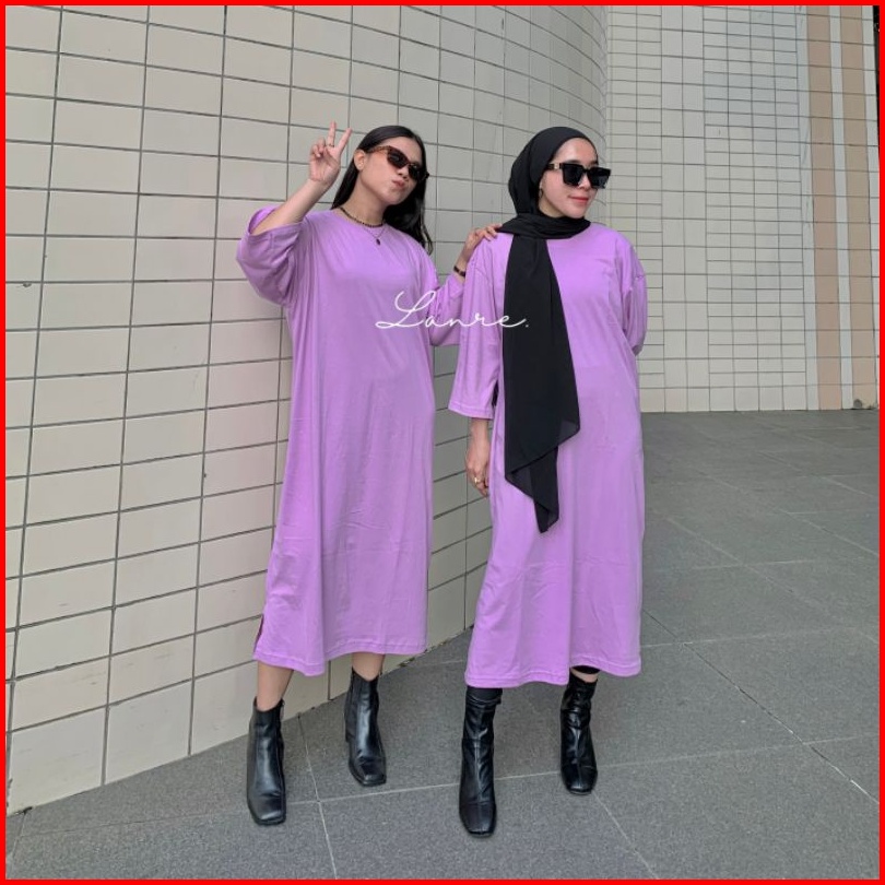 Morfia Long Basic Tee Oversize Tunik Busui Polos Midi Dress Jumbo