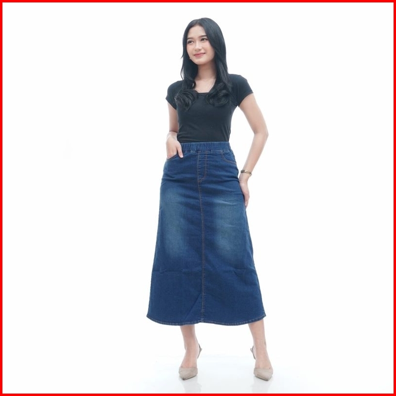 New Arrival 27-42 Rok Jeans Wanita Terbaru Rok Panjang Pinggang Karet Jumbo Rok Jins A-line Bahan Street