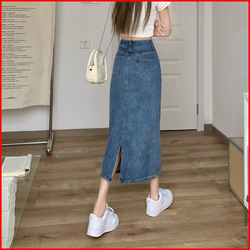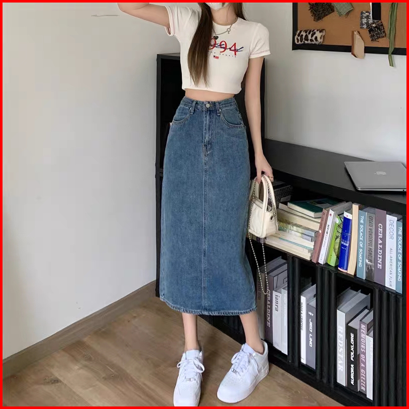 Biru Retro A-line Highwaist Rok Jeans Wanita Korean