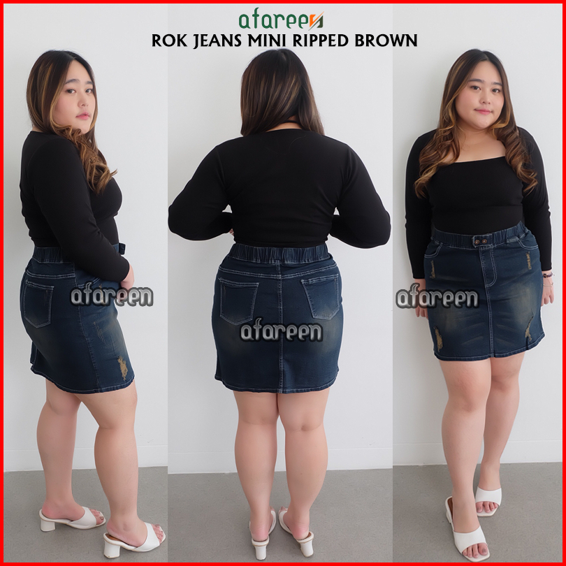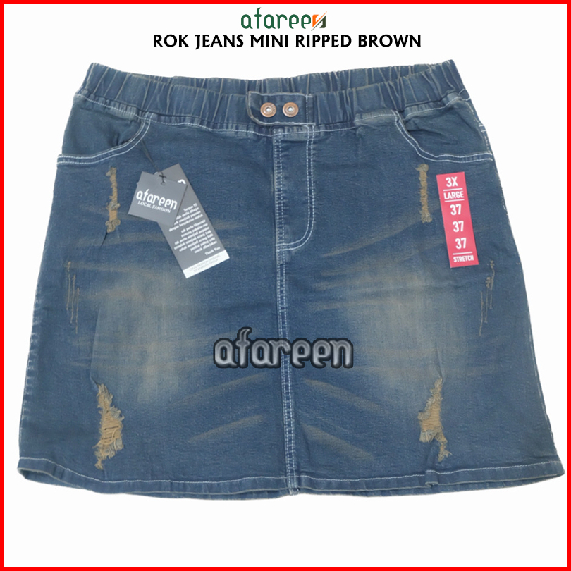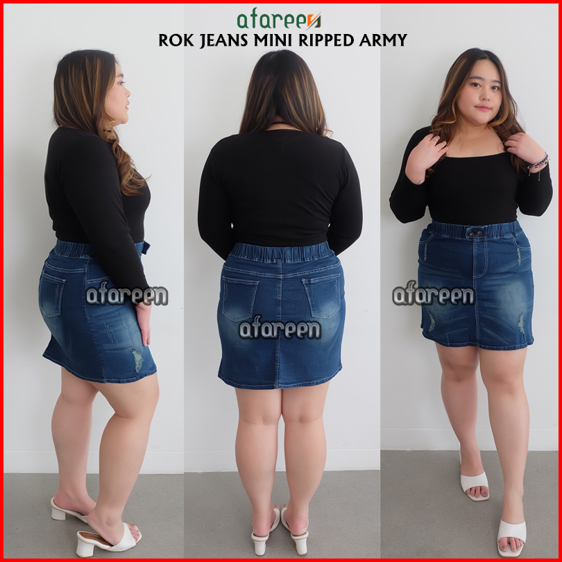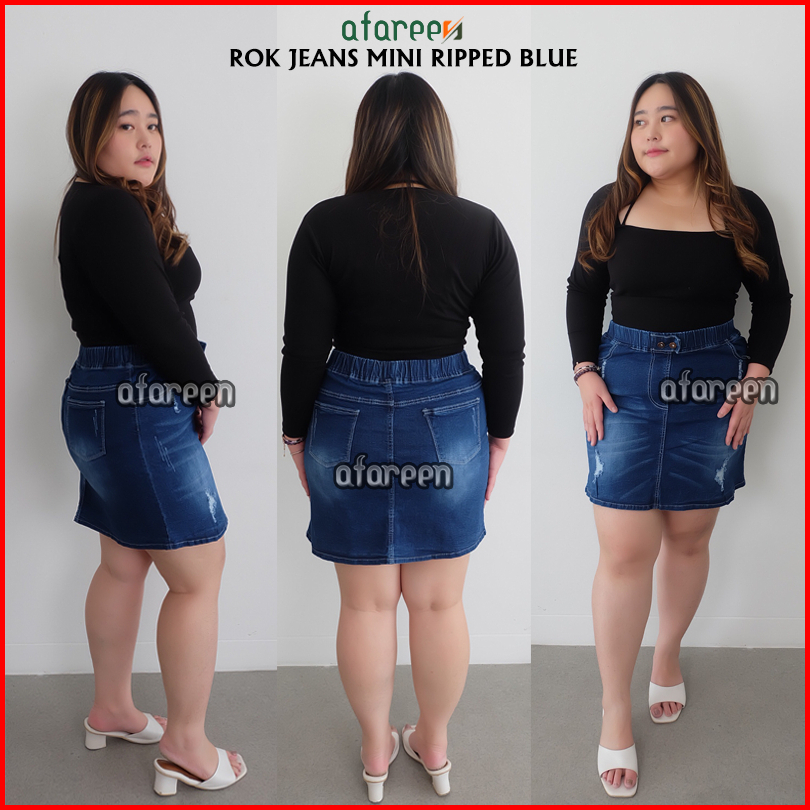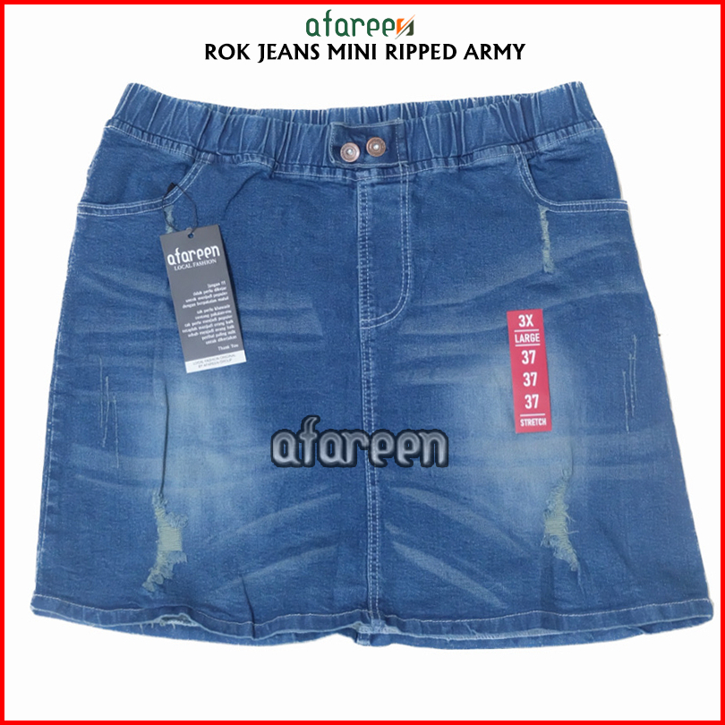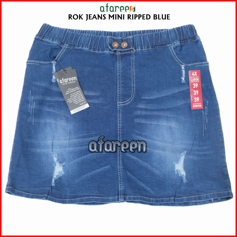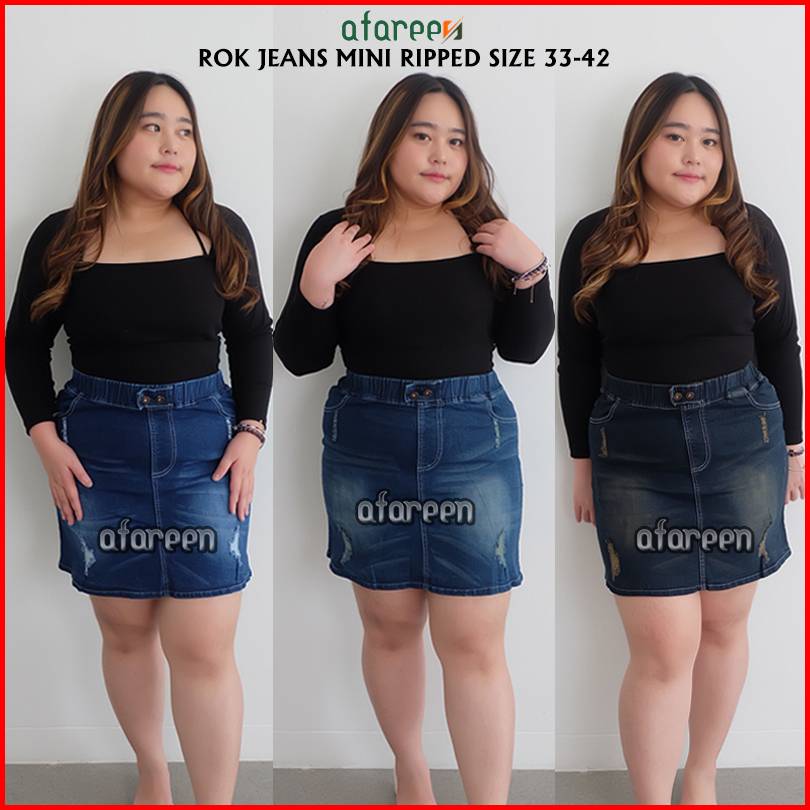 Afareen - Rok Mini Jeans Wanita Jumbo Rok Pendek Jeans Melar Pinggang Karet Skrit Korean Size 33-42