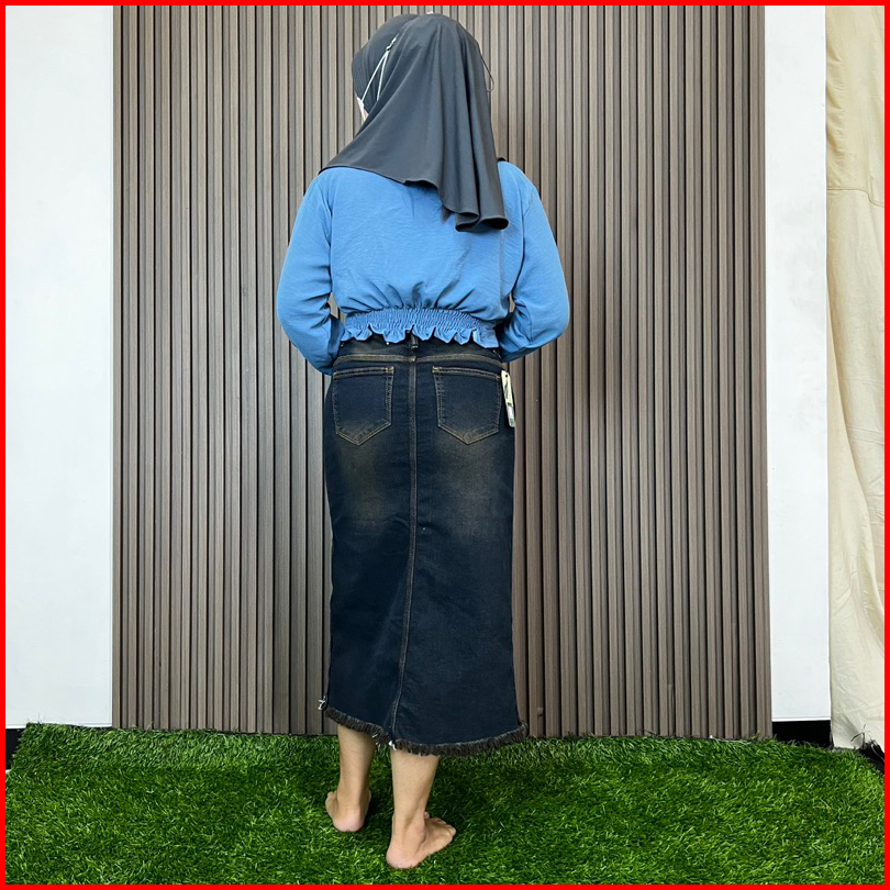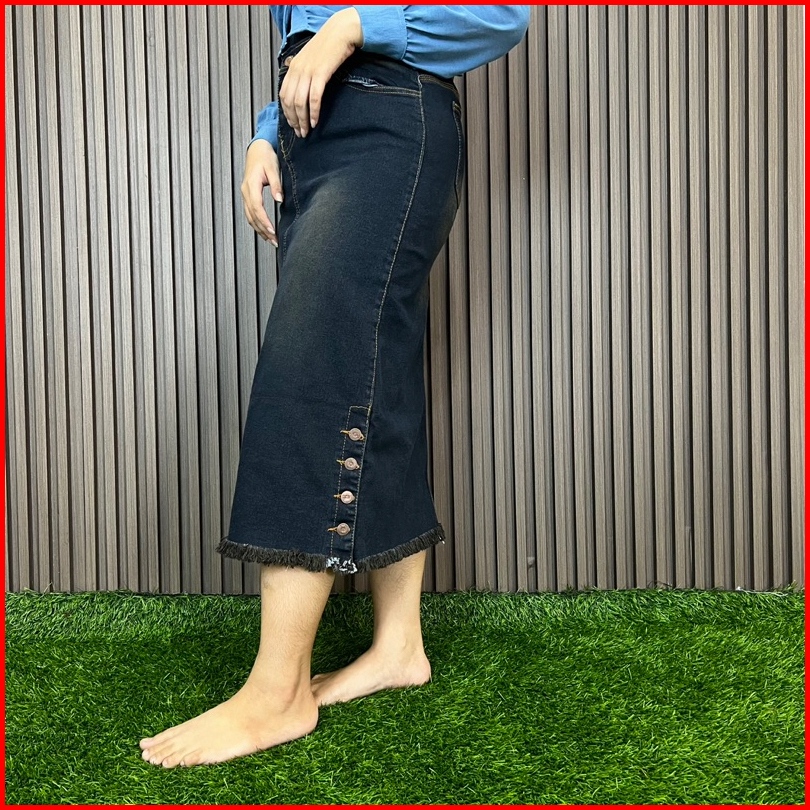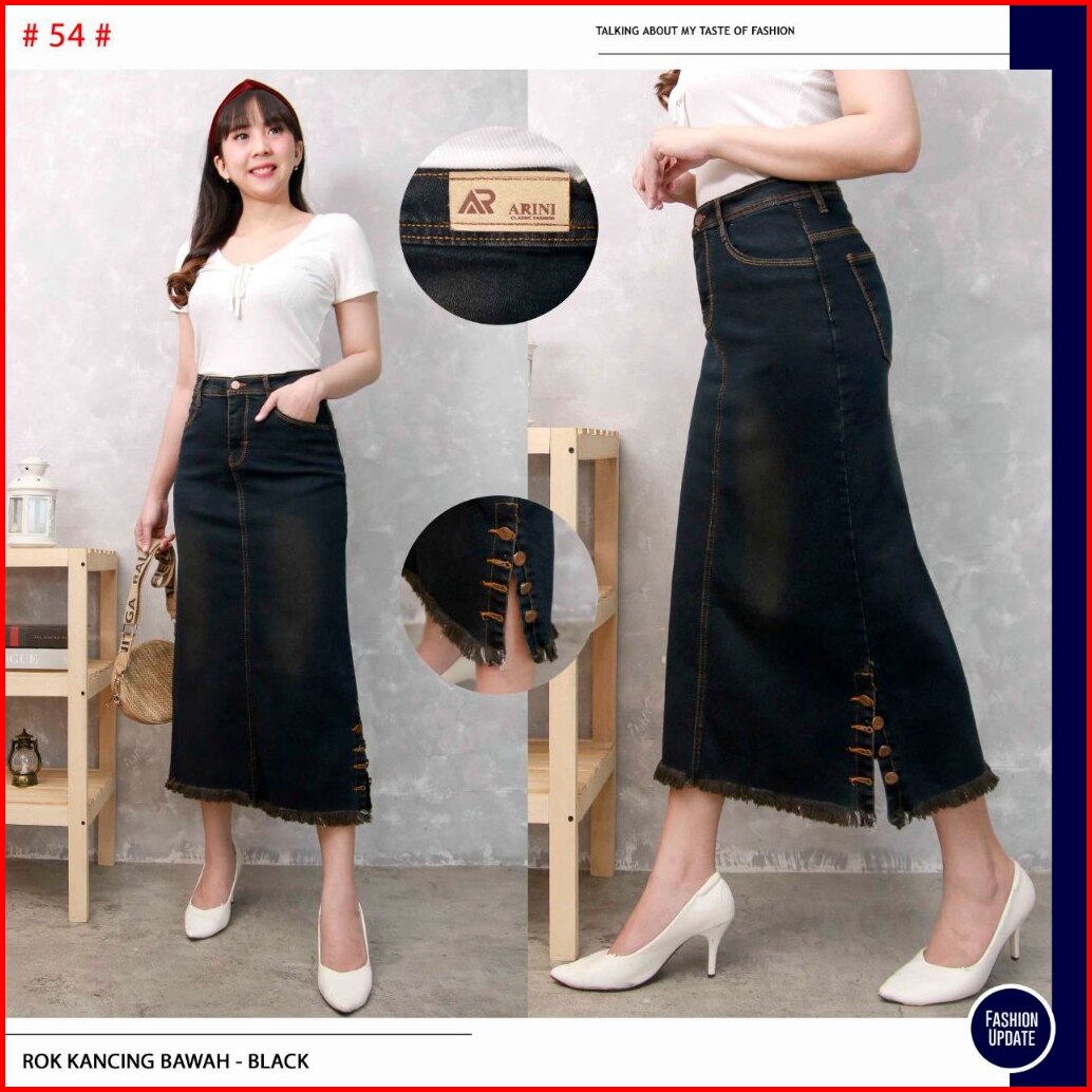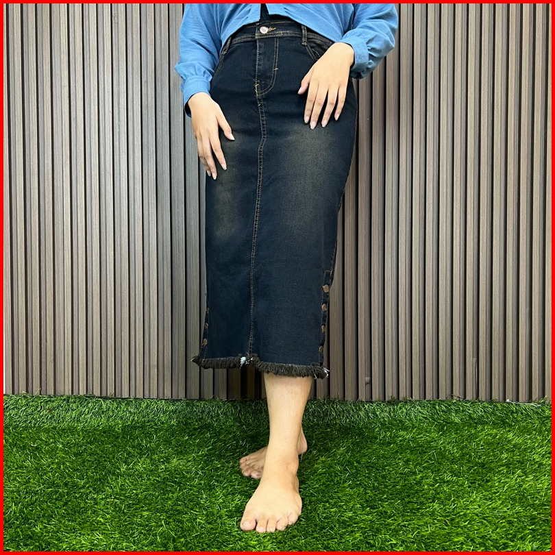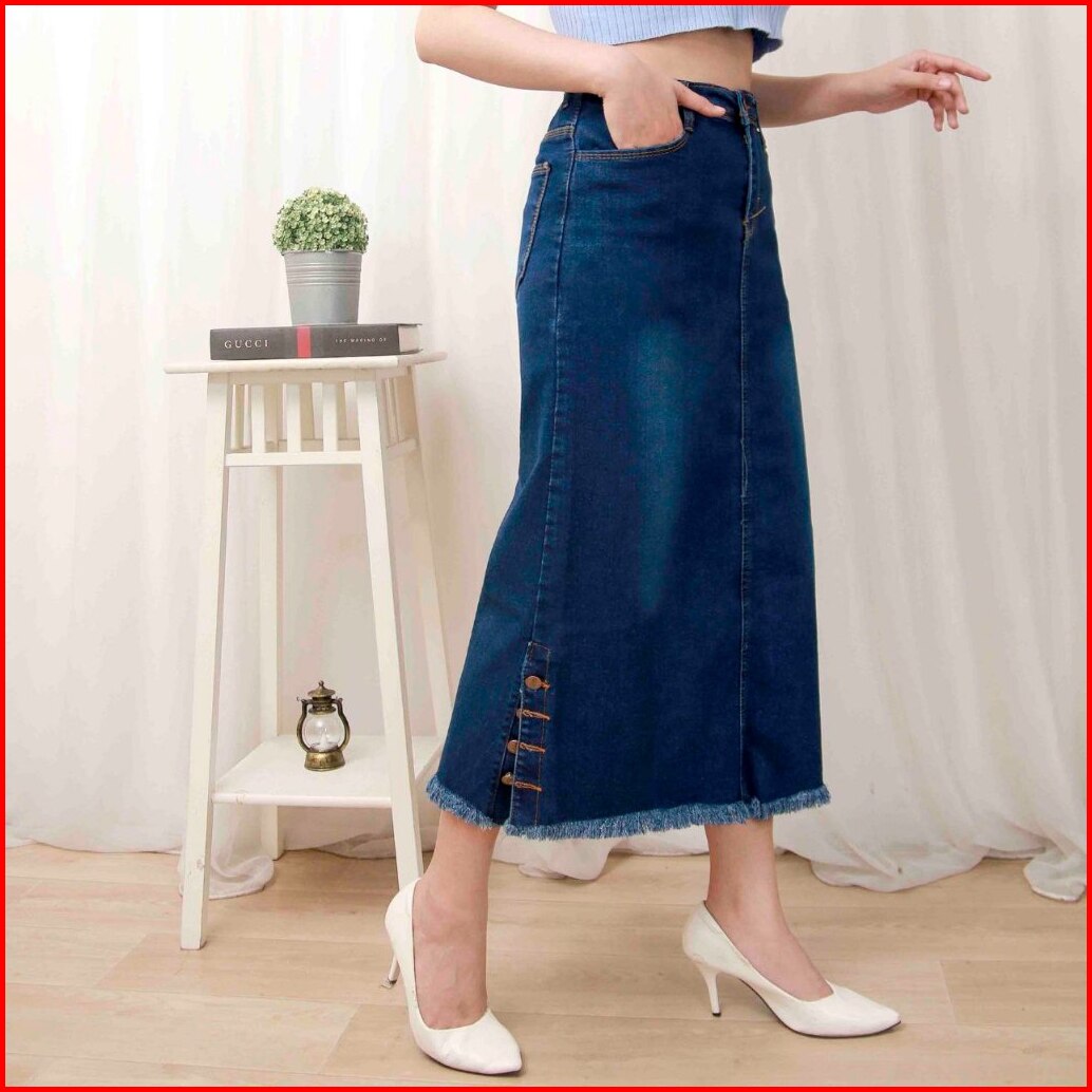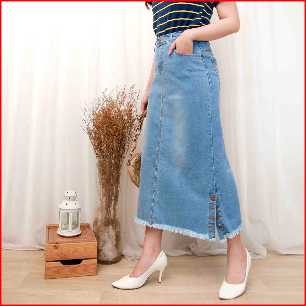 Jeans Skirt Stretch 7 9 Melar Rok Jeans Skirt Kancing Bawah Rawis Korean Style Kekinian