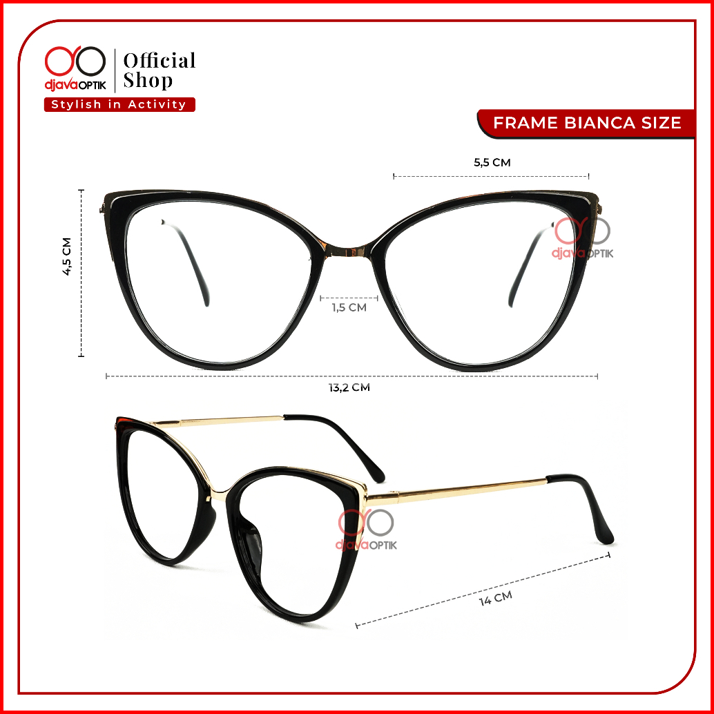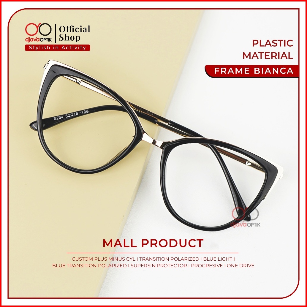 Djava Optik - Frame Bianca - Kacamata Model Cat Eye Mall Supersin Bluelight Transition Protector